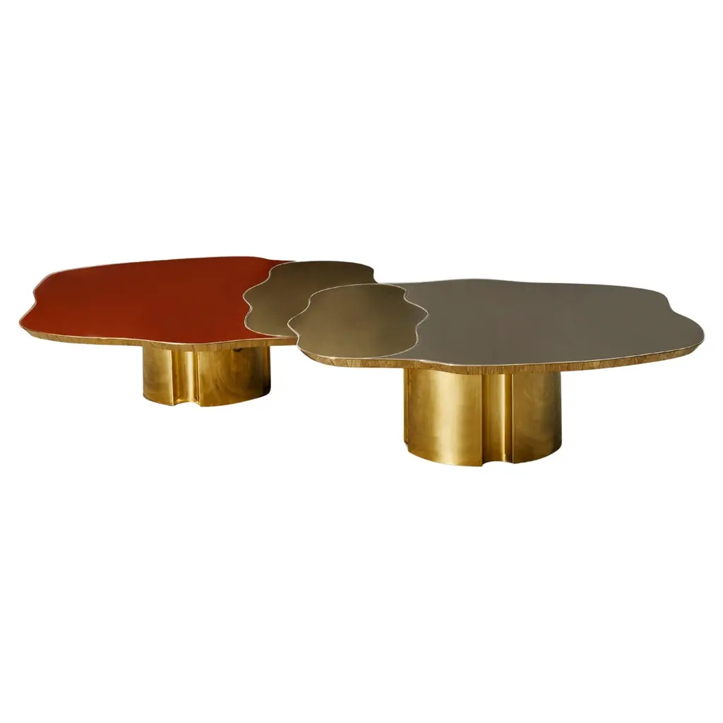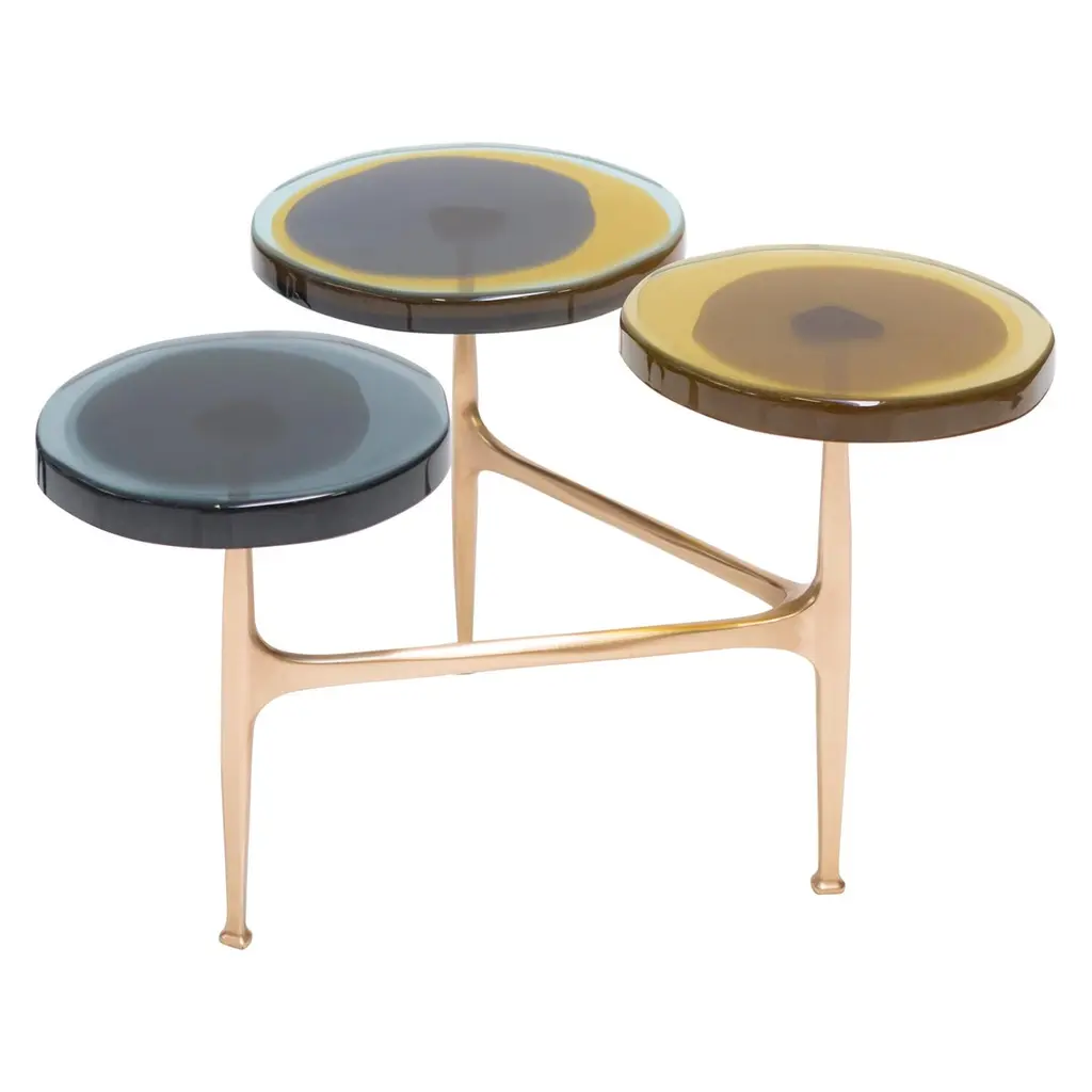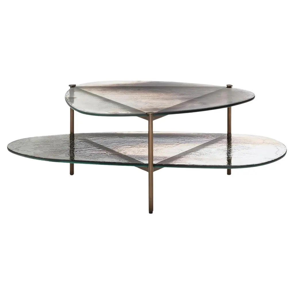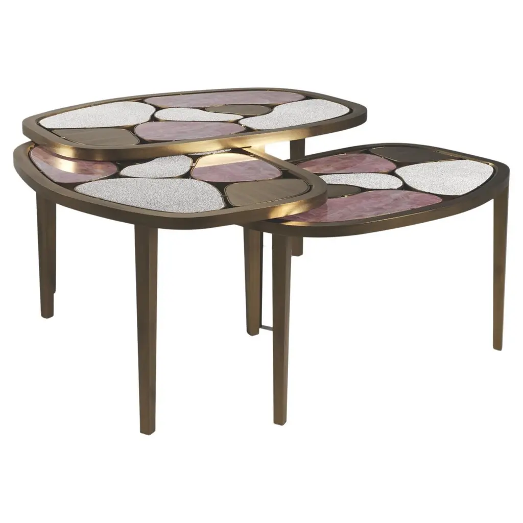 Three-Tiered Coffee Table With Hand-Laid Lotus Bronze, Brass & Custom-Made Glass