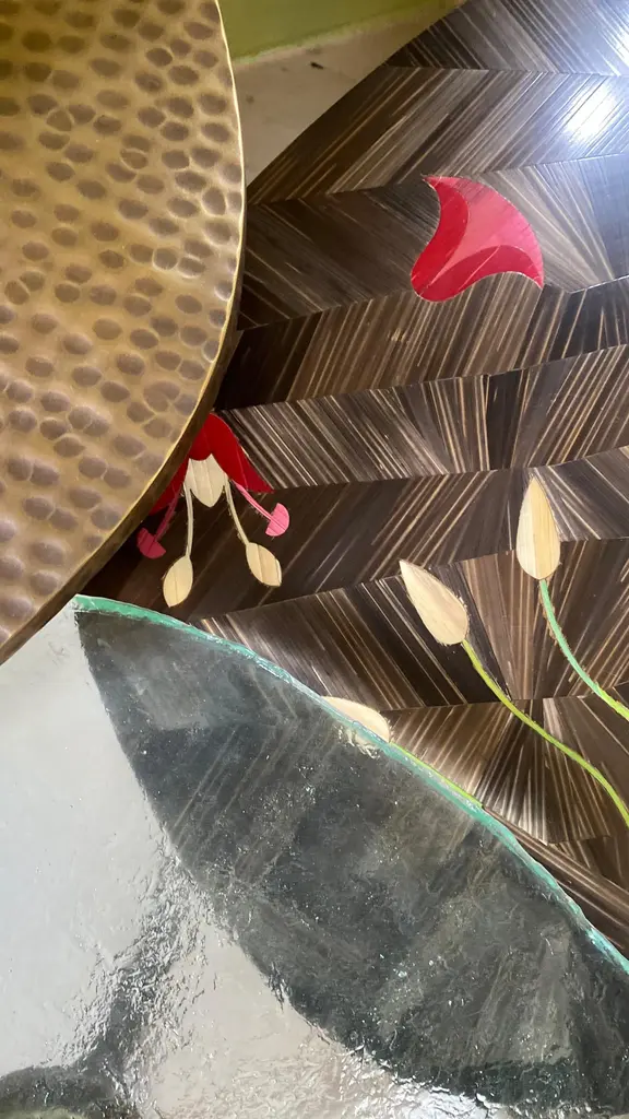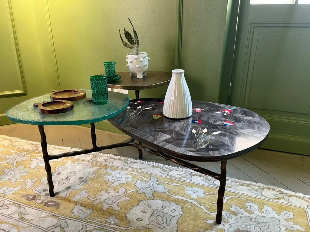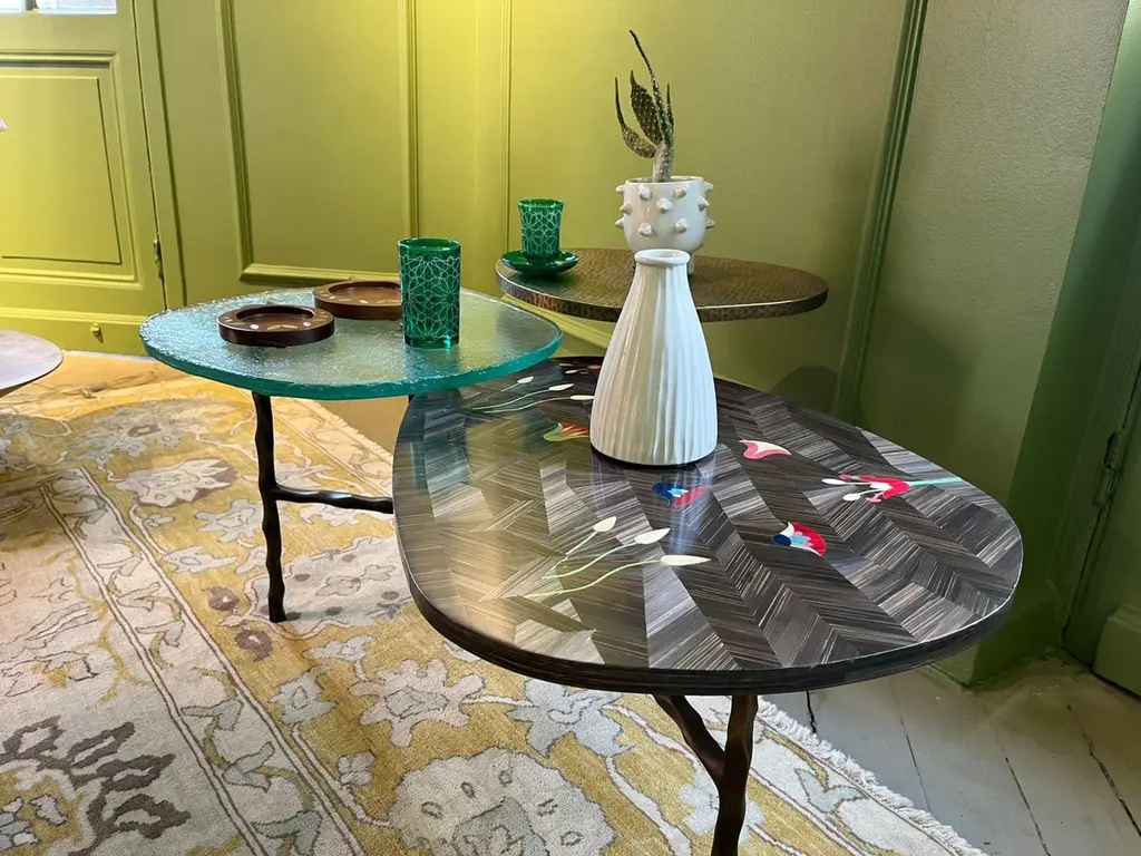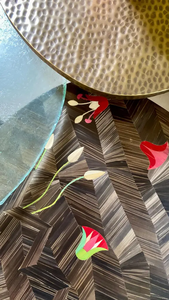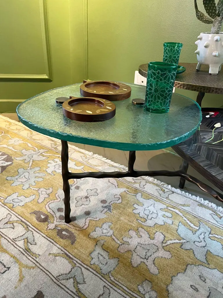 Three-Tiered Coffee Table With Hand-Laid Lotus Bronze, Brass & Custom-Made Glass
