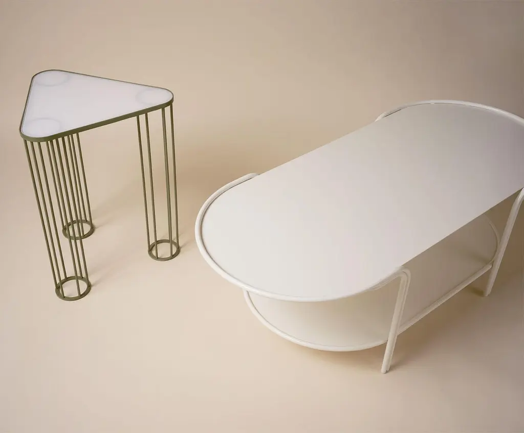 Tiered Outdoor Bancroft Coffee Table In Matte Cream Stainless Steel By Laun