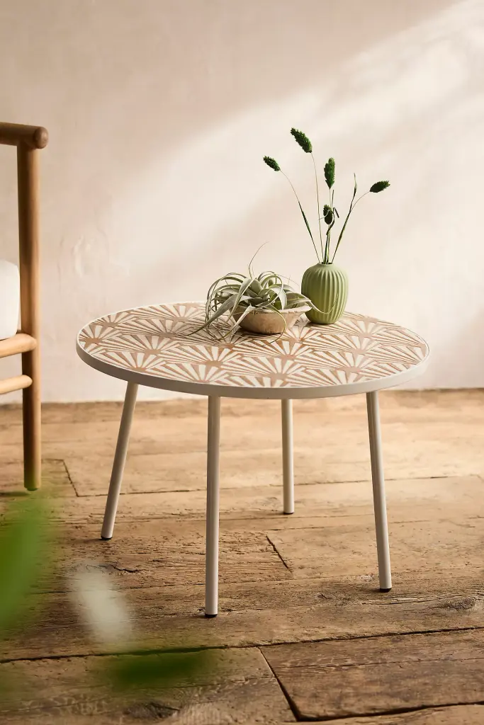 Intricate geometric tilework forms the circular surface of this coffee table. Completed by an iron frame, it’s a striking accent piece for indoor and outdoor spaces. Terrain is a garden and home brand deeply rooted in nature and plant life. From weather-ready planters and outdoor furniture to artisan-made wreaths and hand-poured candles, their curated product assortment explores the boundaries of life lived outside and in. With a globally conscious, locally influenced point of view, Terrain offers inspired seasonal solutions for creative living, gathering, and gardening.