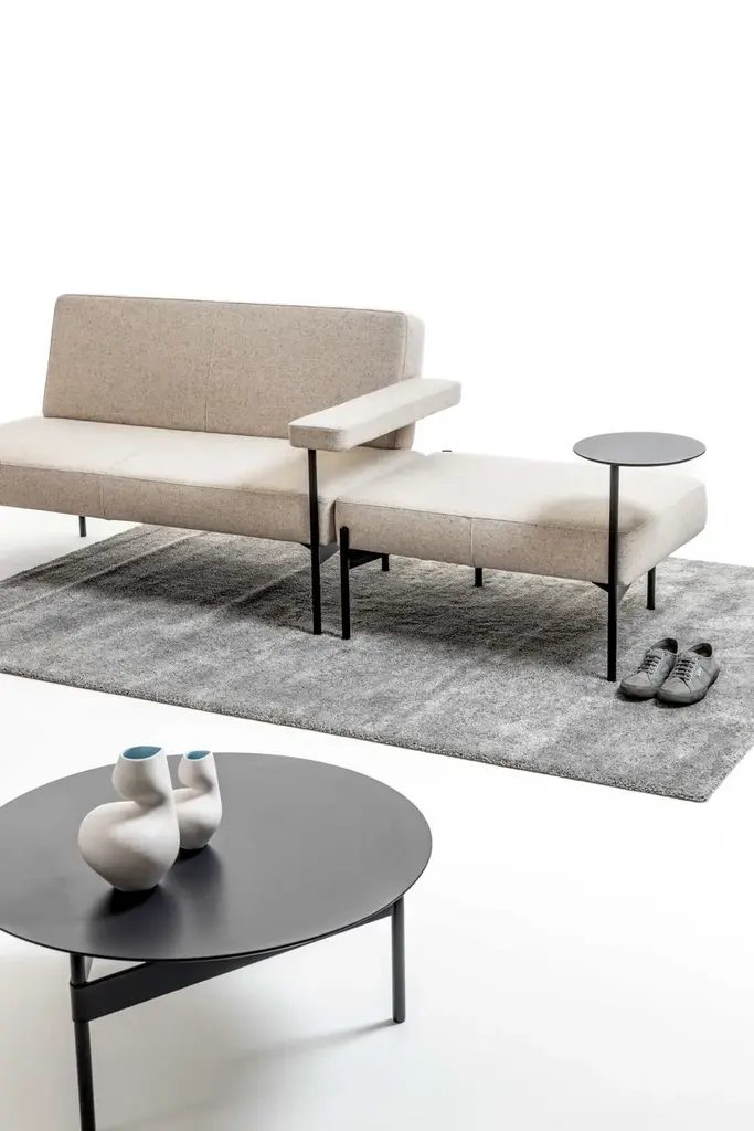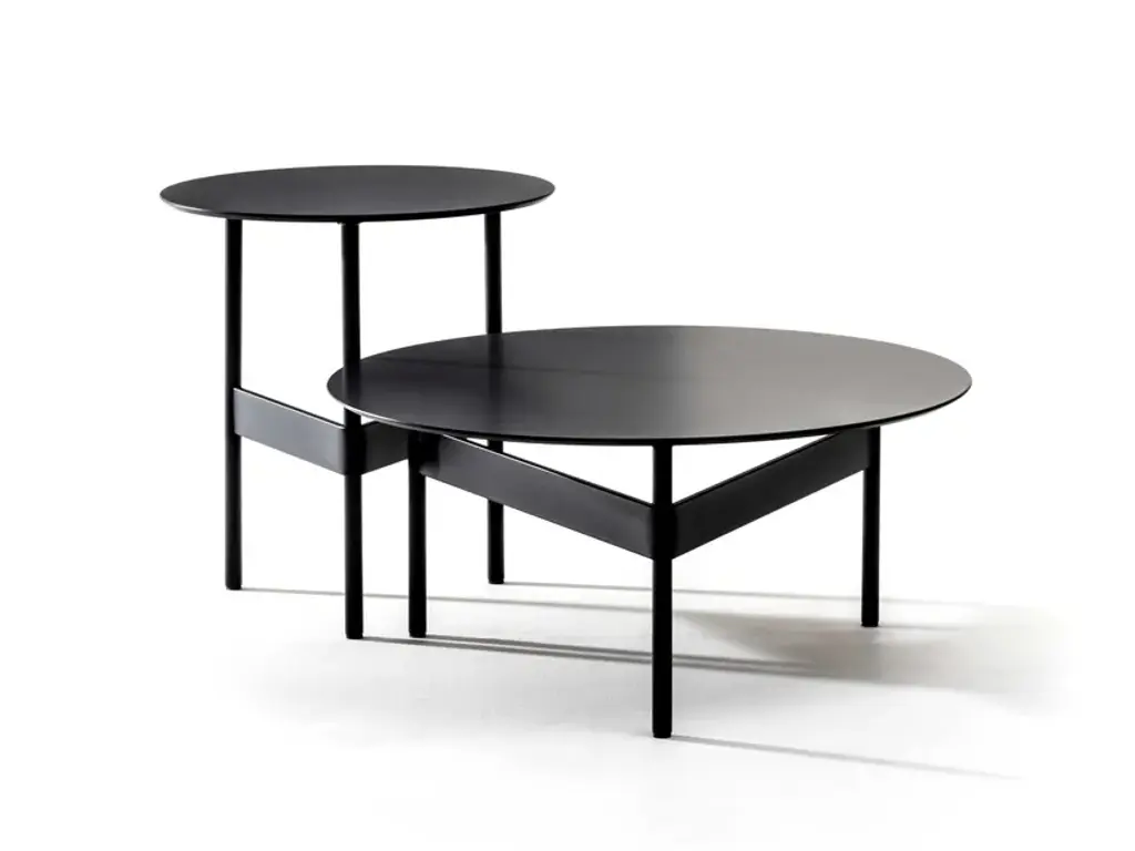 Tilos is a free-standing round table with a tubular metal frame and polypropylene tips with felt.Grey top. Black frame.