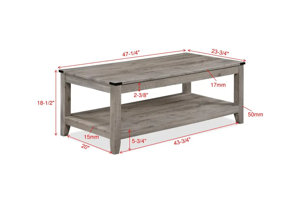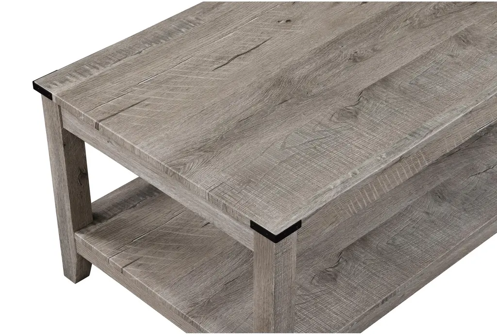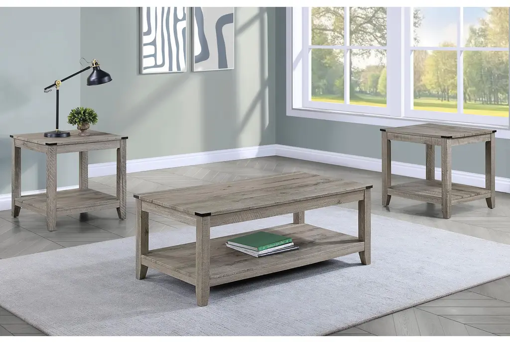 Enhance your living space with the Tilton 3 Piece Coffee Table Set, a perfect blend of rustic charm and farmhouse elegance. This grey trio set, crafted from MDF with a 3D paper veneer, features a rectangular shape and a soft, neutral color that complements any decor. The set includes a coffee table and two occasional tables, each with a storage base, making it both stylish and functional.