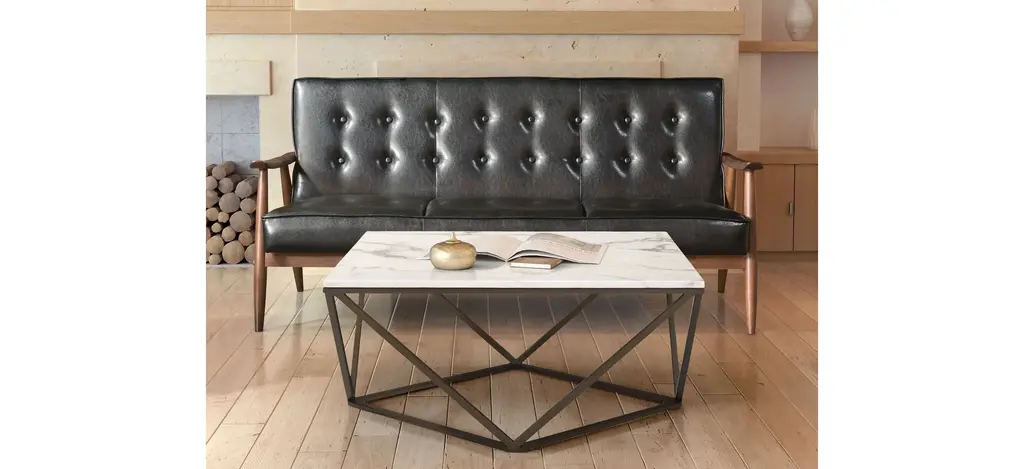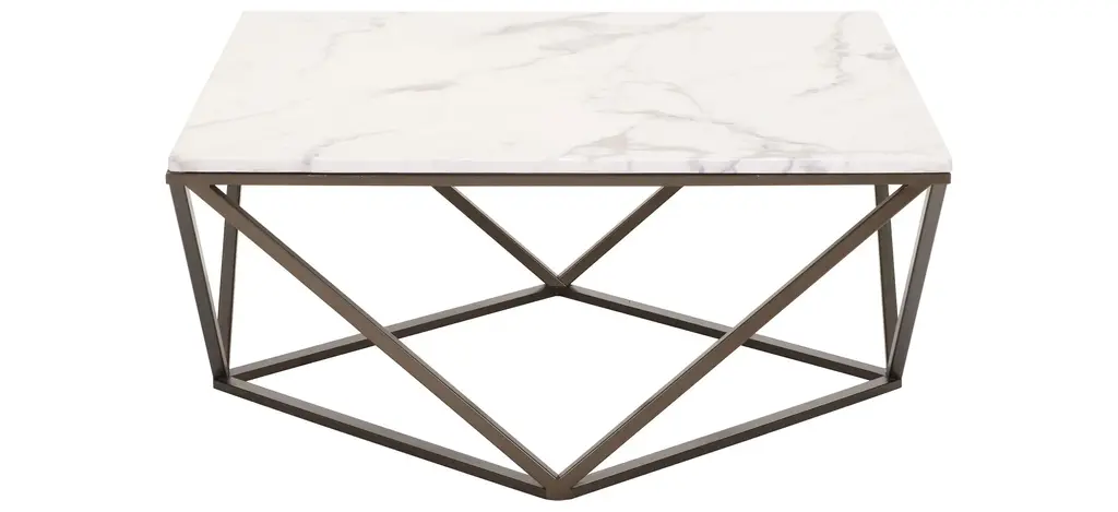 Perfect Geometry. This gorgeous Tintern Coffee Table with its square marble-like top that rests on an architecturally inspired base is a beautiful addition to any living space. Its modern open-air design is perfect for small spaces and its large surface is functional, keeping everything you need close at hand.