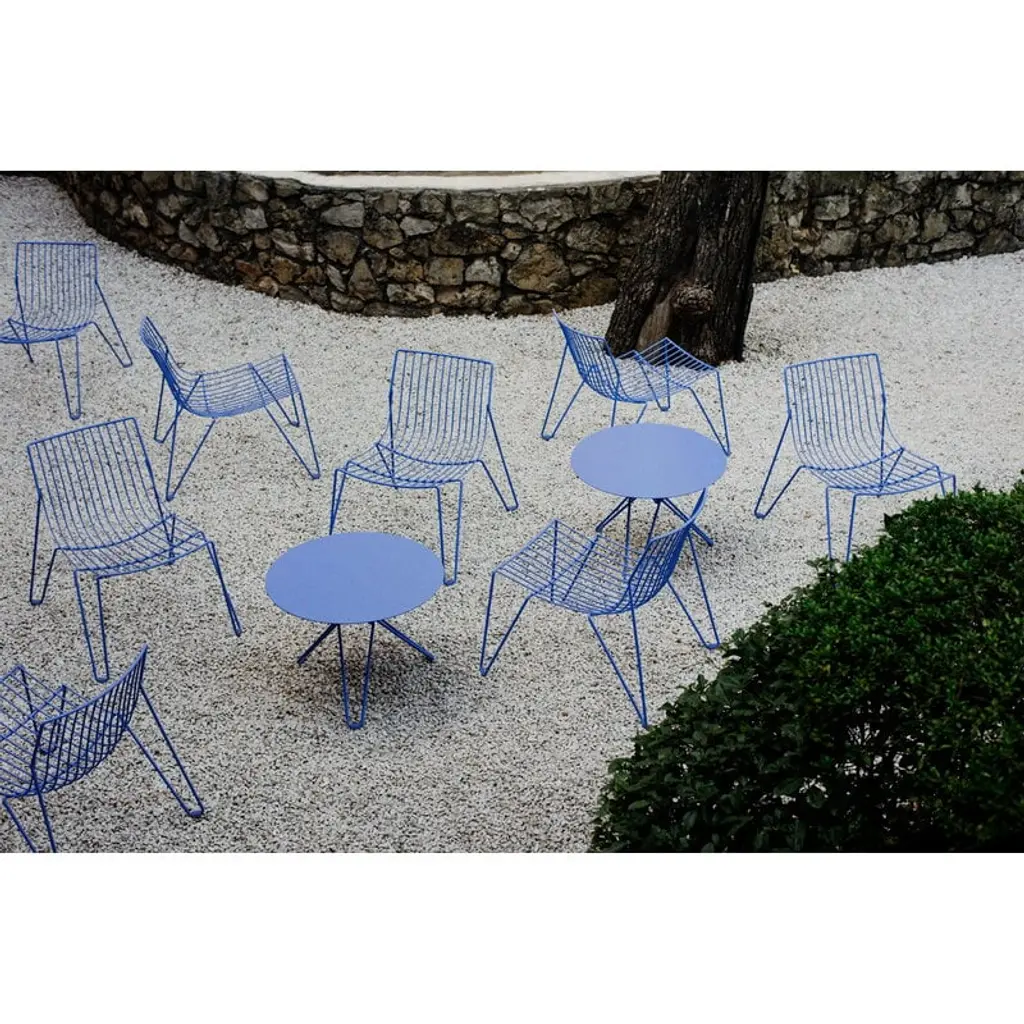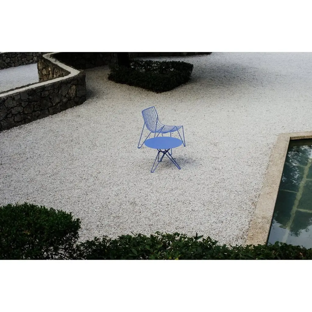 The Tio table by Massproductions is an elegant coffee table suitable for both indoor and outdoor use. Gracefully supporting the round metal tabletop, Tio’s frame is made from galvanized steel wire with a refined powder coating, giving the table its distinctive light and airy look. Designed by Chris Martin, the sophisticated Tio collection is a timelessly beautiful choice for both the living room and the terrace, indoors and out.