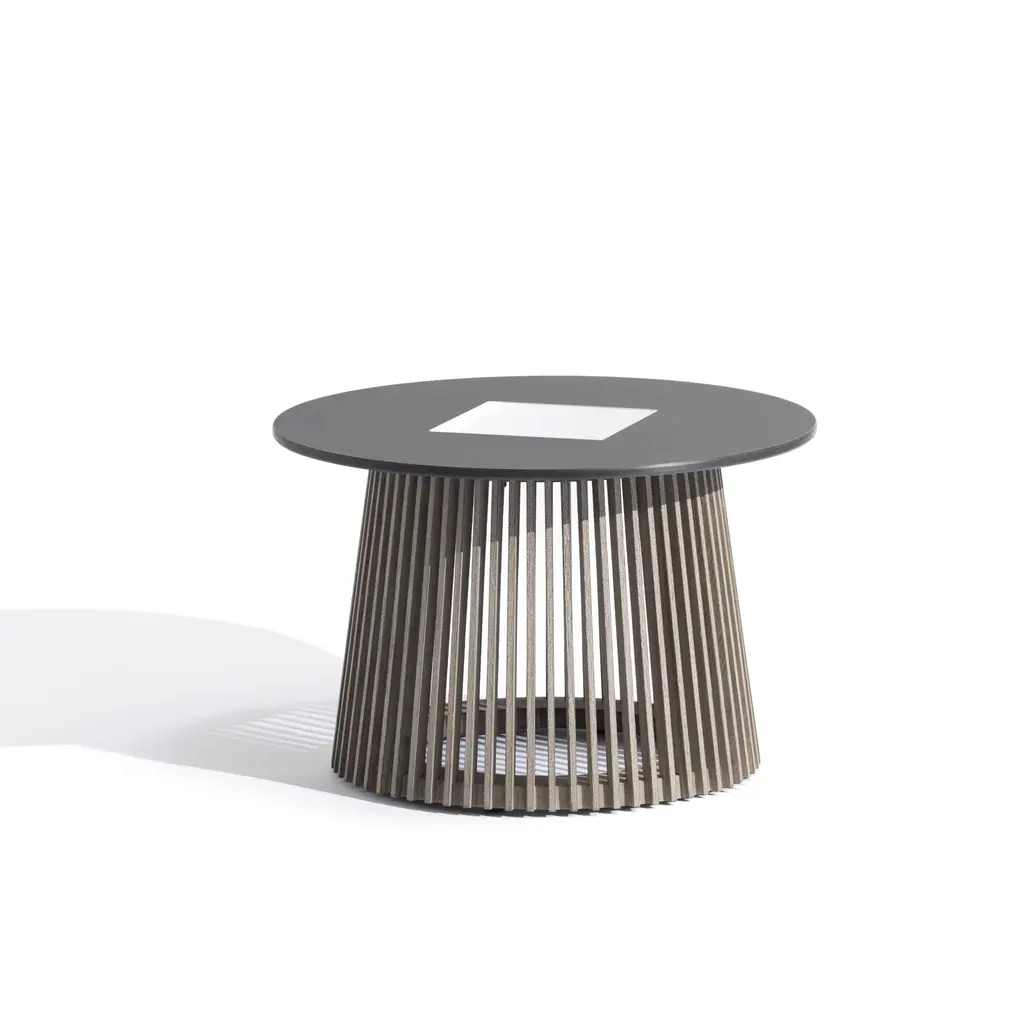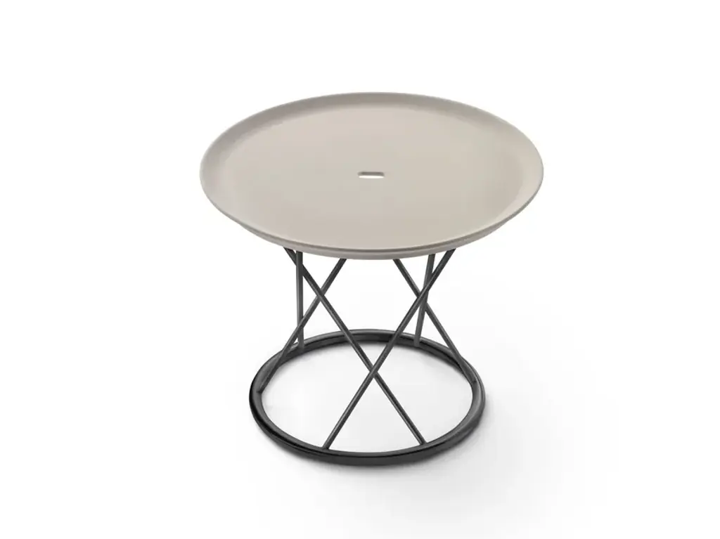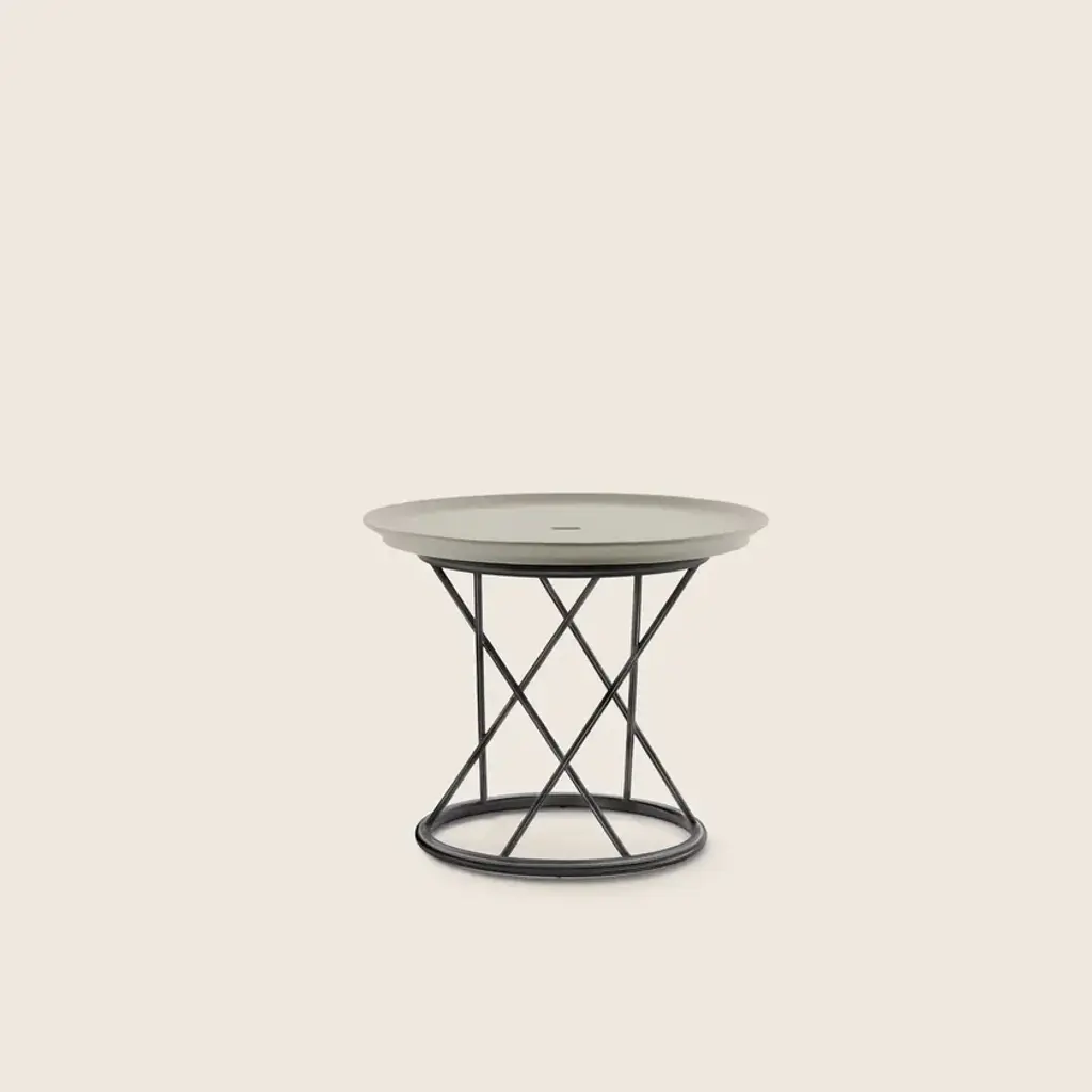 TORCELLO is a round side table with a powder-coated steel frame, available in two sizes.FeaturesTop: in ceramic in the colors oat, oyster, bluish grey, moss green, and brick.Structure: in metal, powder-coated with epoxy powders in the finishes: burnished, glossy anthracite, matte titanium 710, or in the following colors: white 100, cream 205, pearl beige 130, shadow grey 720, sage green 730, pearled mouse grey 740, brown grey 805, bronze 820, matte black 900, matte white 160, matte sand 610, matte brick 620, matte sage green 630, matte terracotta 625, matte forest green 635.Feet: resting on adjustable thermoplastic material feetTorcello is a collection of tables and side tables characterized by essential lines and harmonious proportions that define its character, where geometric rigor meets the sophistication of materials.The steel base, powder-coated with epoxy powders in a range of sophisticated shades, forms a structure that is both solid and light, emphasizing the dialogue between form and function.The circular table tops, available in glass, wood, or marble – the latter excluded for the Ø190 version – offer different material interpretations, balancing transparency and tactile surfaces.For the side tables, the top is available exclusively in ceramic, in a range of refined colors.