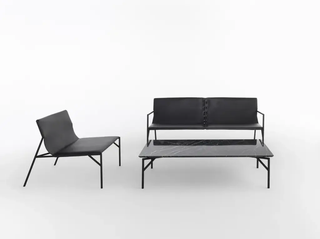 The 'Tout le Jour' collection, translated as 'all day', is the result of a collaboration between HORM.IT and Marc Thorpe. The collection's sensitivity is rooted in the honesty of the materials and structures used to produce the furniture. MATERIALS:Black painted metal frame and marble top.The collection is structured in two and three-seater sofas, a lounge, a chair and a coffee tables.