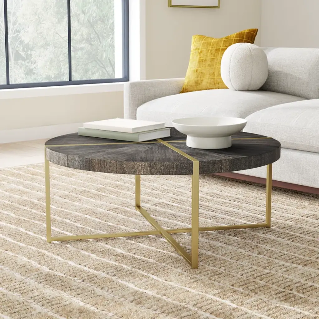 Modern and inviting, this coffee table features a stainless steel framework finished in a sleek brushed brass hue. We love its bold mixed-material look, which we're seeing everywhere these days. Speaking of, the tabletop is made from solid acacia veneers with a dark walnut stain and a light gray glaze. The X frame detail of the frame also crisscrosses on the tabletop for an added touch of texture and shine. Basically, this coffee table is the perfect pick for living rooms of all styles. Plus? It arrives fully assembled. Score!