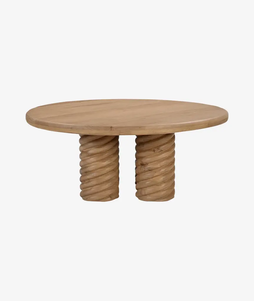 The Treccia coffee table embodies a contemporary reinterpretation of classical aesthetics, distinguished by its intricate turned and braided details. The table features an exaggerated, elegantly detailed pedestal base, presenting a bold modern twist while ensuring practicality. Its pedestal design is visually appealing and enhances functionality, creating a welcoming, uncluttered space for gatherings and everyday use.