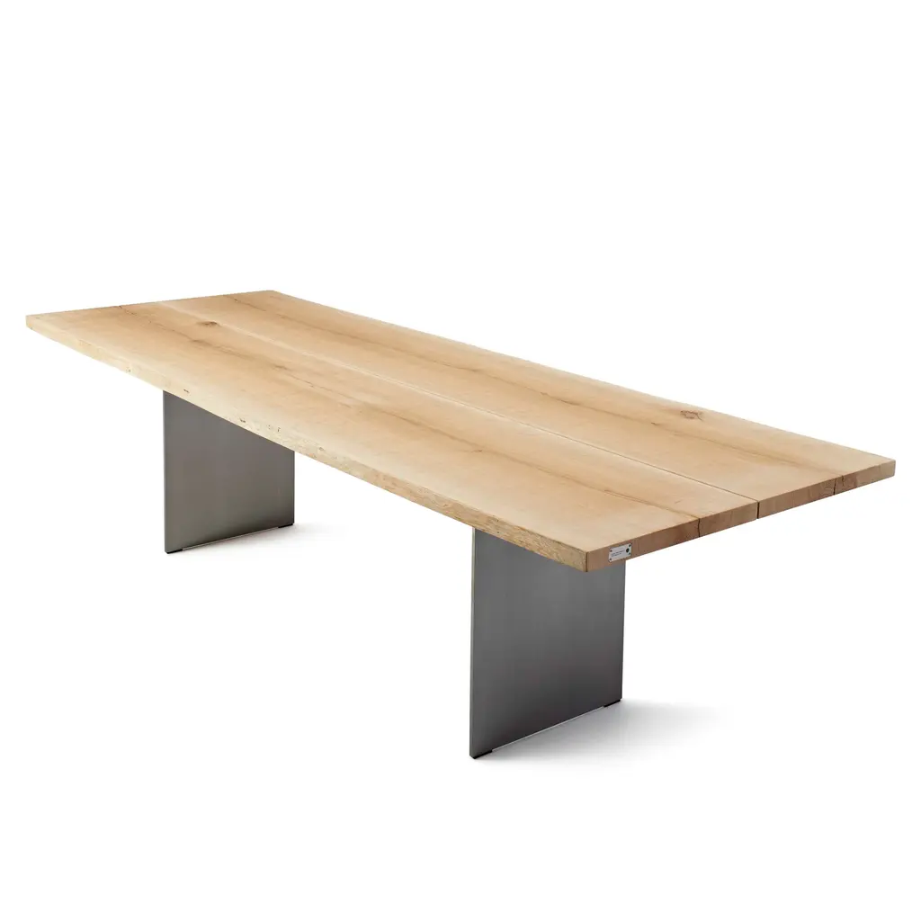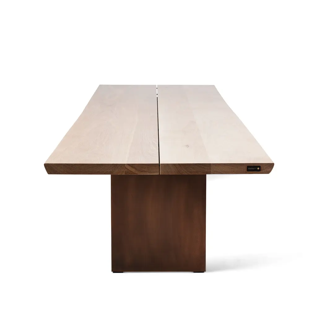 Perfectly balanced and elegantly simple, the Tree Coffee Table highlights the beauty of natural wood. Designed by Jacob Plejdrup for Danish furniture brand dk3, the table blends traditional craftsmanship and modern engineering in a stylish design. The simple steel base supports two wooden planks that make up the table’s top. Left natural and un-painted, the top boasts grain textures and organic lines. Since every table is one-of-a-kind, the surface can also feature small cracks and knots that give the design a rustic character. Smooth and angled, the edges feature a hand-sanded surface. Tree Coffee Table is an ideal choice to bring a touch of Nordic style and natural warmth into a contemporary interior.