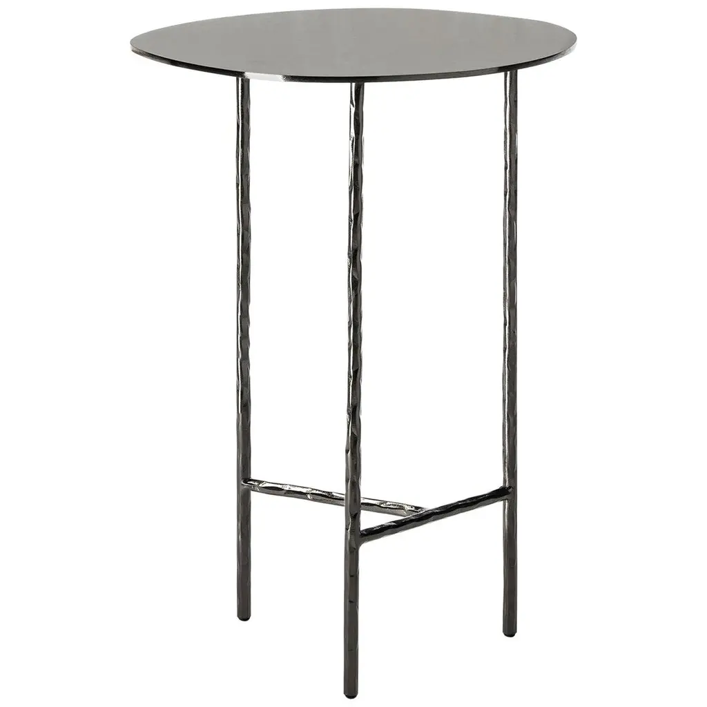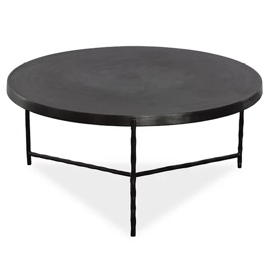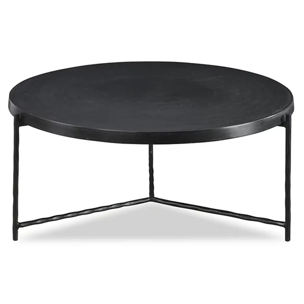 The Trellick Coffee Table from Uttermost is rich with contemporary elegance and showcases modern textures and artisanal details. Its cast aluminum top creates a contrast against the three-legged chiseled black iron frame, adding depth and character to the design. This fusion of materials and textures matches smooth contemporary style with artisanal flair, making the table stand out in any living space. With its refined lines and sophisticated look, this table enhances the ambiance and functionality of modern interiors.