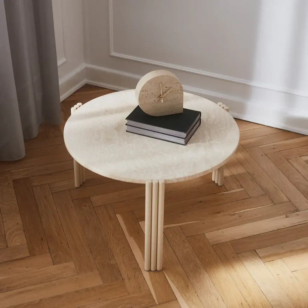 These elegant marble and travertine tables in natural colours can be placed together – creating a stacked effect as the tables have different heights and shapes. The design is simple with thoughtful details on the table legs that gracefully and worthily carry the marble and travertine table tops. When placed together, the tables create a true work of art worthy of displaying in the centre of your home, perhaps as the focal point of your living room. Tribus coffee table is available in various sizes, shapes, and colour options.