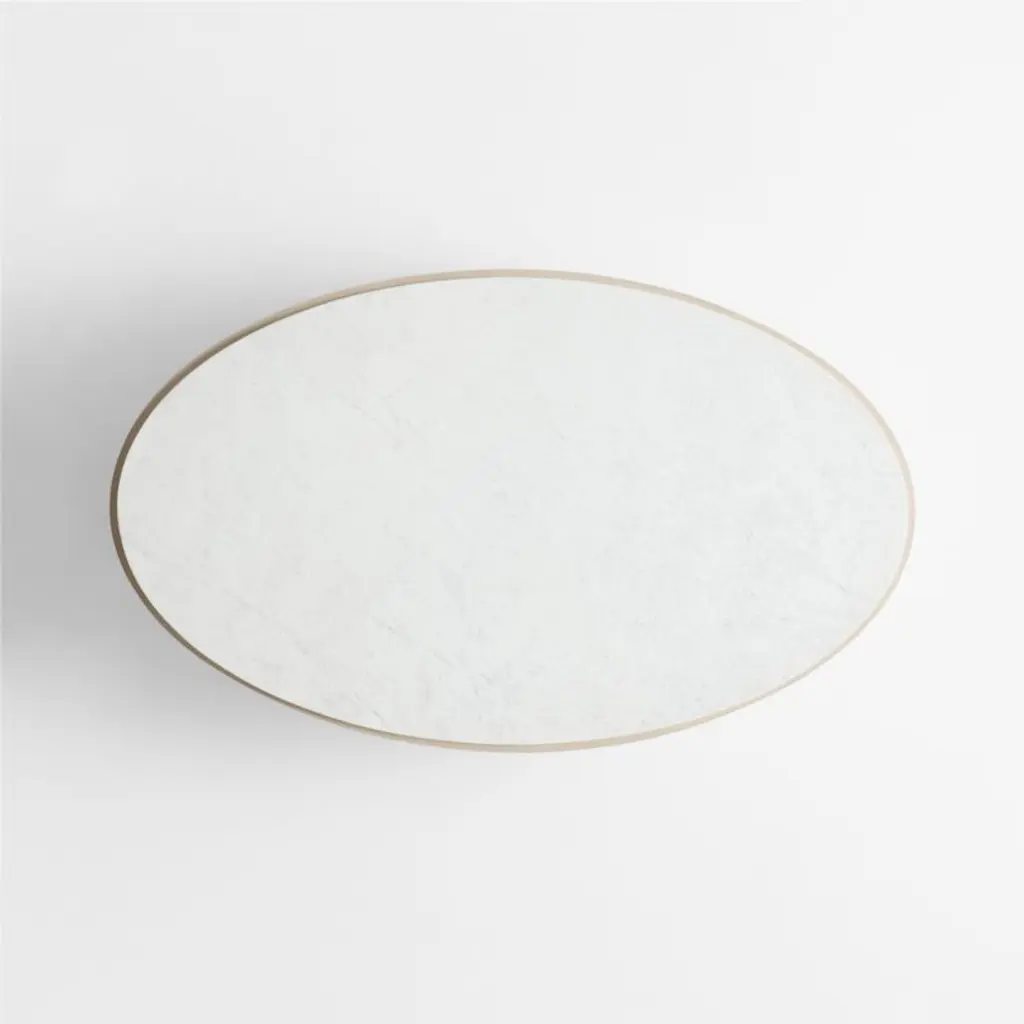 Troupe Marble And Natural Pine Wood 60" Oval Coffee Table