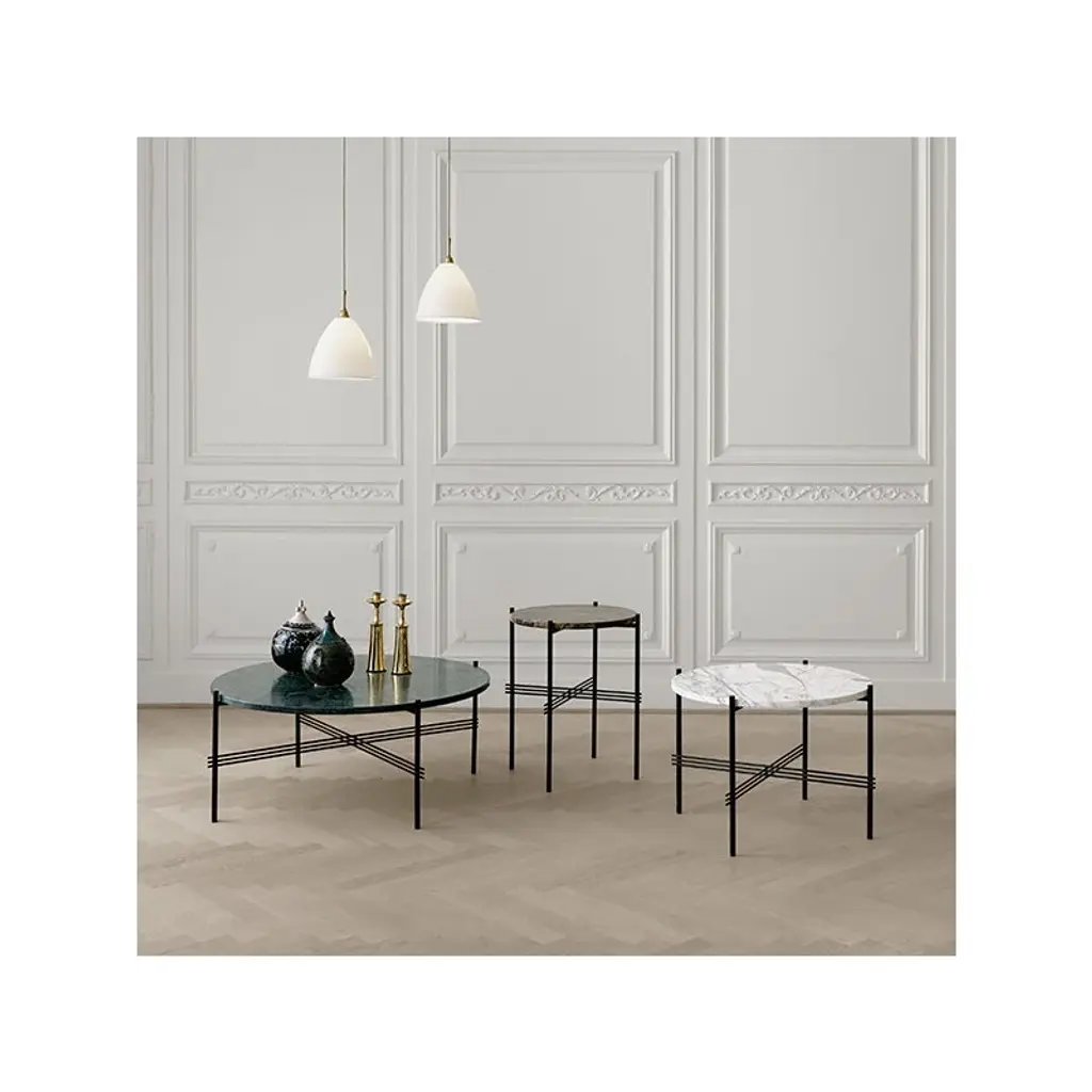 TS from GUBI is a collection of elegant coffee tables, designed by the Danish-Italian design duo GamFratesi for the entrance and lounge areas of the Michelin-starred restaurant The Standard in Copenhagen. The designers drew their inspiration for the beautiful design from the 1930s building housing the restaurant: a round marble top stands on slender metal legs with eye-catching, intersecting rods. Place a large TS coffee table in front of a sofa and a smaller version next to a lounge chair – or be bold and mix and match different colors and sizes to create an eye-catching cluster of tables!