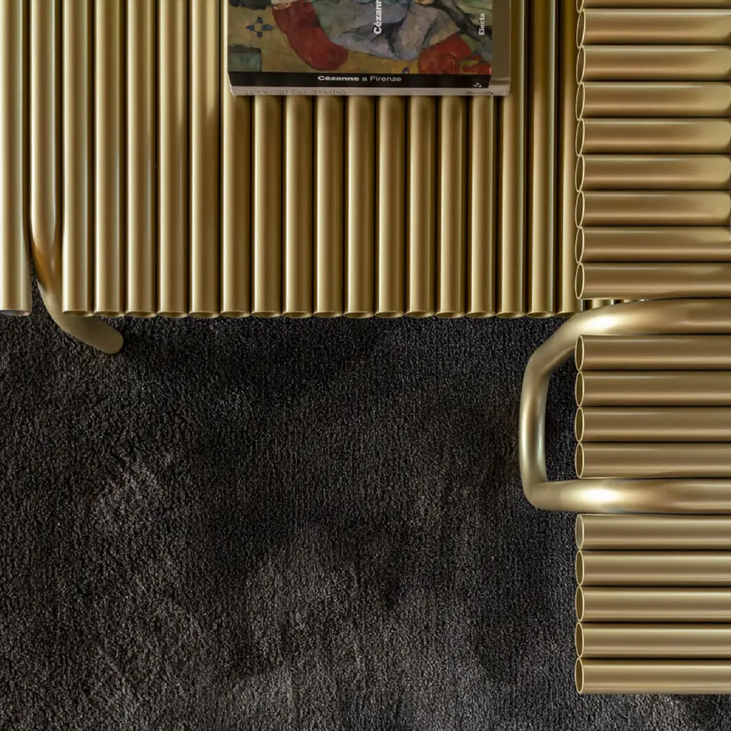 Introduce a bold statement of elegance into your living space with the Tubular Metal Coffee Table by Mogg Pipelines. Featuring a striking graphic design and strong metal construction, this coffee table combines essential lines and well-known geometries to create a sense of lightness and solidity. Perfect for adding a touch of sophistication to your home decor.