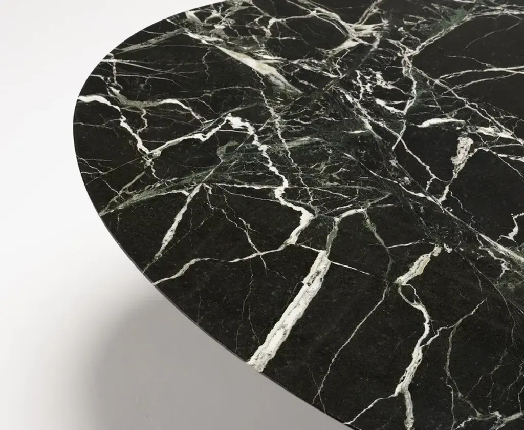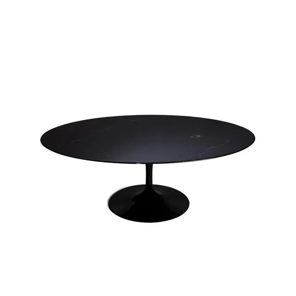 Eero Saarinen's pedestal table collection includes coffee, side and dining tables. The Knoll logo is located on the uderside of the base. A nameplate with the KnollStudio logo and the signature of Eero Saarinen is also located on the underside of the top or on the top support plate.CONSTRUCTIONTops are available in bevel-edged satin smooth laminate, lacquer, acrylic stone, marble and veneer.Coated marble tops feature a transparent polyester coating to help eliminate use-associated stains.Base is constructed from moulded, cast aluminium. White and black bases are protected with Rilsan.FINISHESTables are available in white and black laminate, coated marble in a wide range of colours and in the veneer. Top in acrylic stone for outdoor use.Base finish is available in black and white.