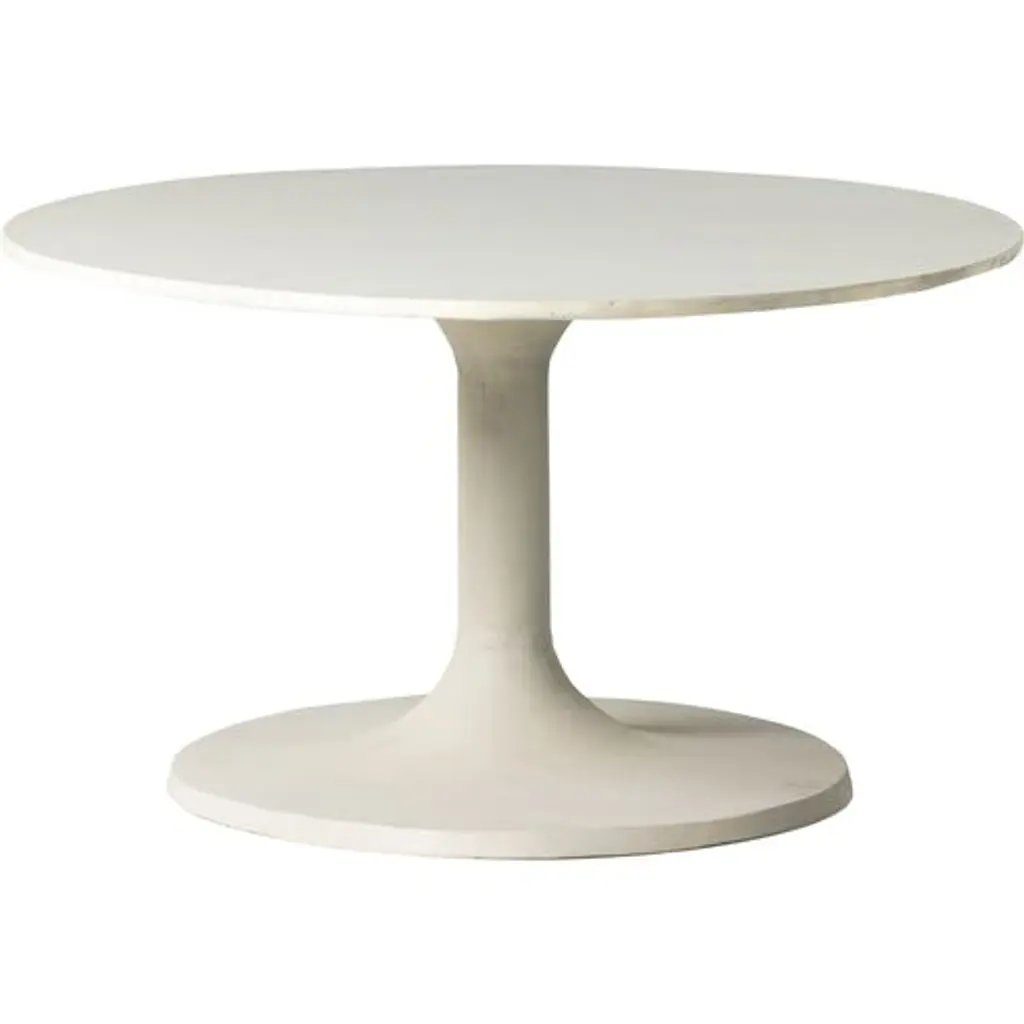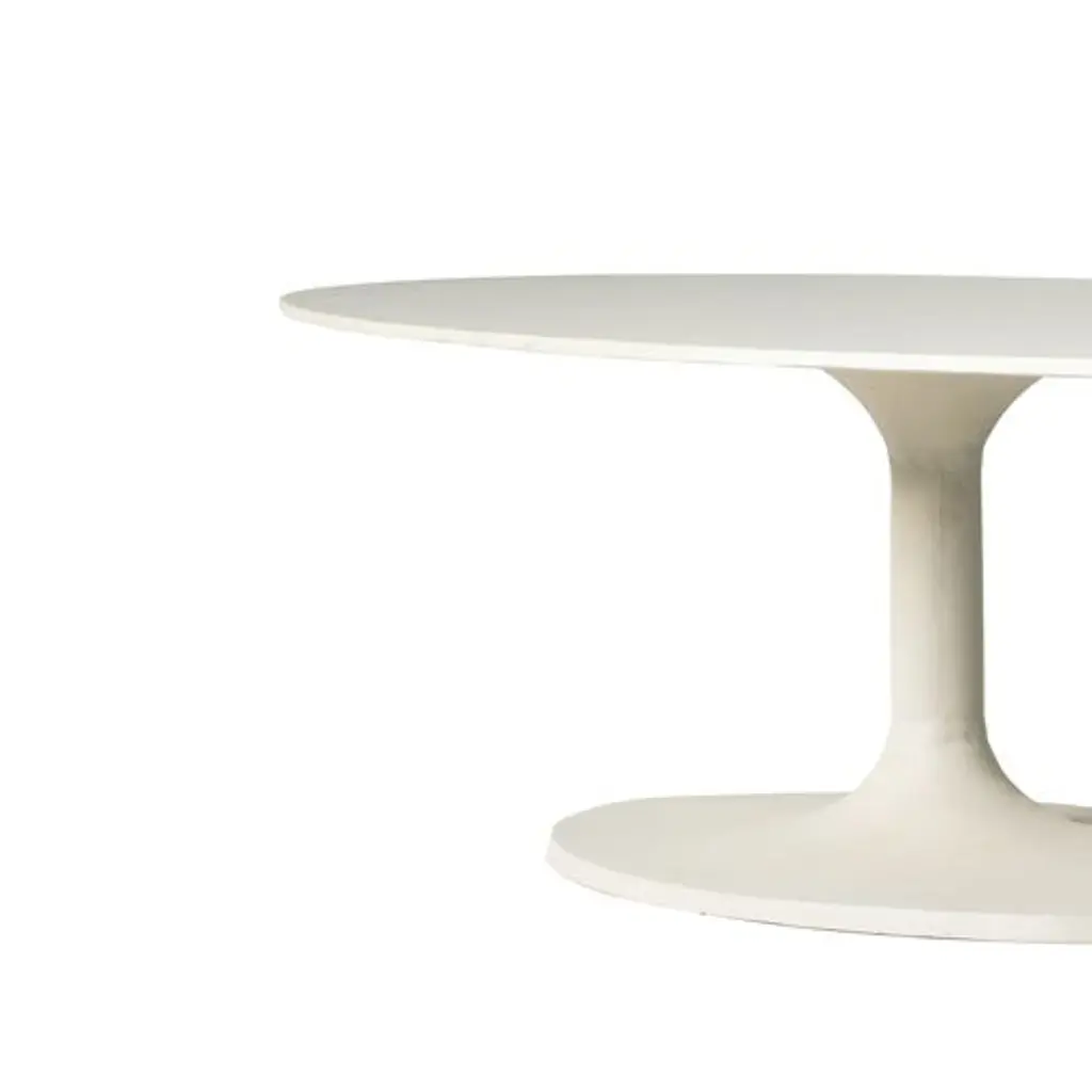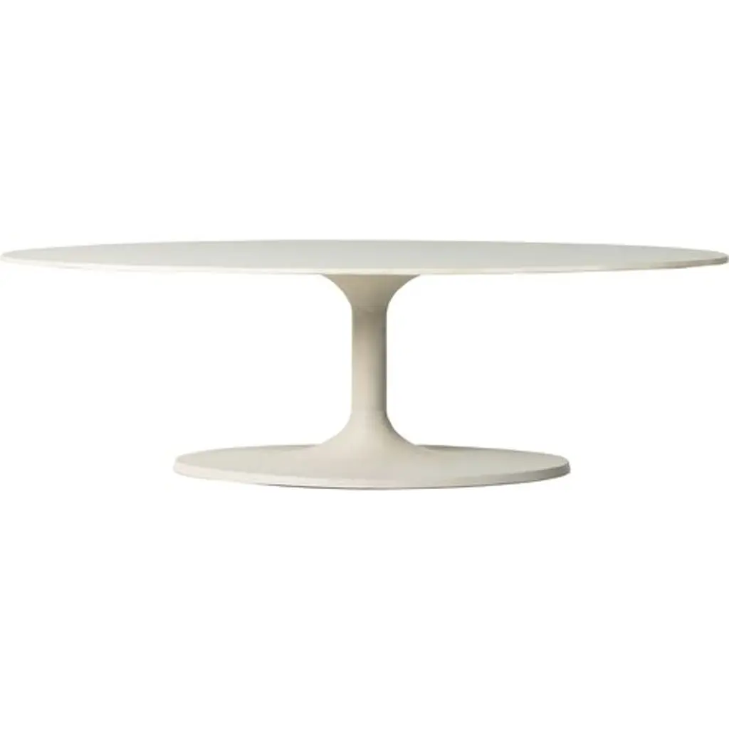 Classic tulip shaping in a textural cast aluminum makes for a beautifully modern coffee table, with alluring highs and lows played up by a matte white finish. Great indoors or out; cover or store indoors during inclement weather and when not in use.