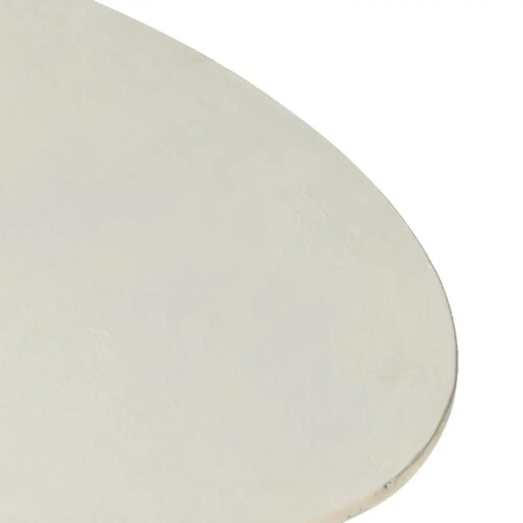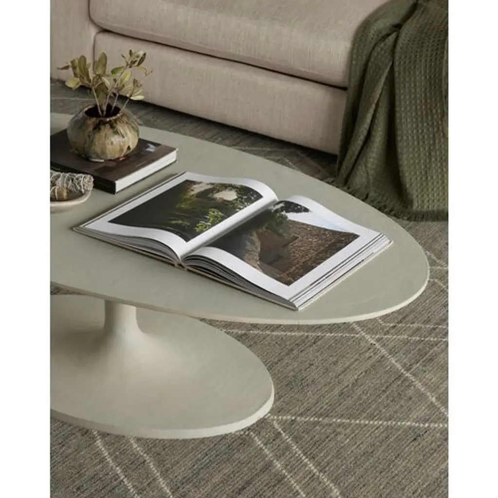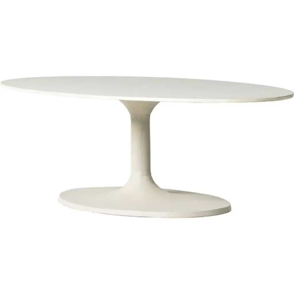 Classic tulip shaping in a textural cast aluminum makes for a beautifully modern coffee table, with alluring highs and lows played up by a matte white finish. Great indoors or out; cover or store indoors during inclement weather and when not in use.