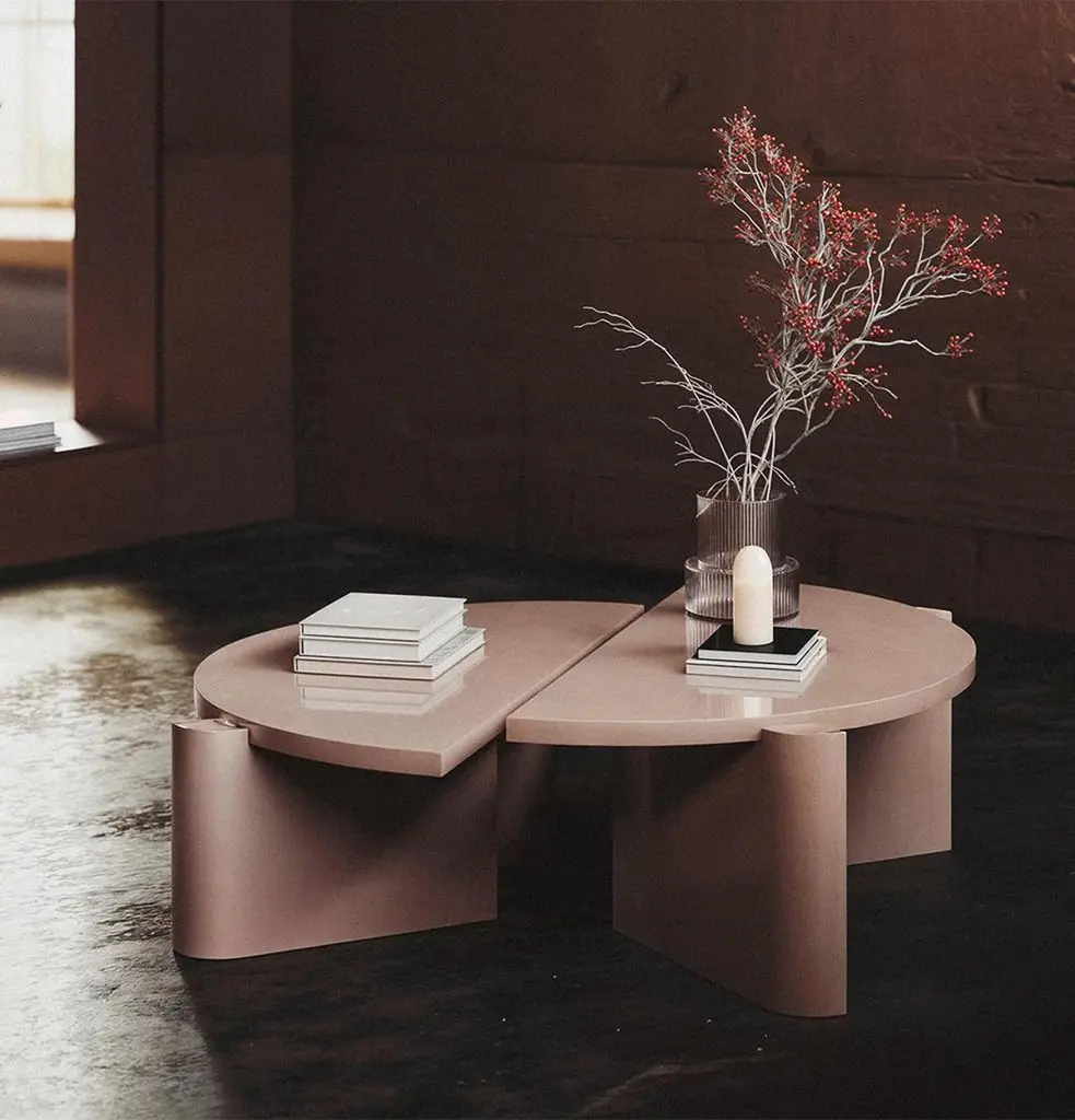 The simple and stylish Twin coffee table, designed by placing the semicircular form on angled legs, consists of two modules of different heights. It creates an attractive image from every angle with its glossy material and gradual form.Comes in two pieces.We apply high gloss acrylic lacquer on our glossy coffee tables. Glossy lacquer and varnish finishes are produced with special techniques and they are the most durable lacquers on the market. Turned solid wood is used on its legs. Despite this, the use of glossy lacquer is always sensitive, open to chemical reactions and scratches. Especially heavy cleaning materials cause the coffee table surface to fluctuate and become dull. It has been observed that some nail polishes and acetones and disinfectants can cause permanent damage. It is recommended to clean with a damp, clean soft cloth.