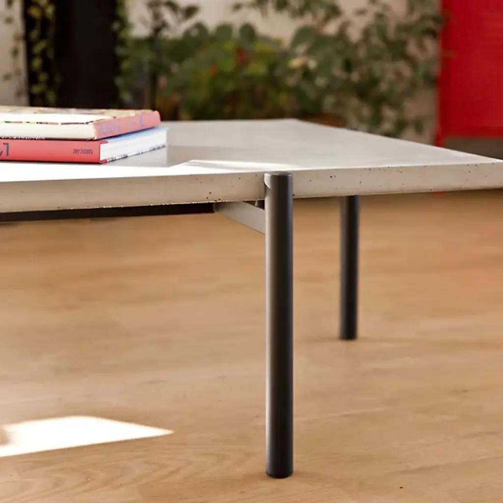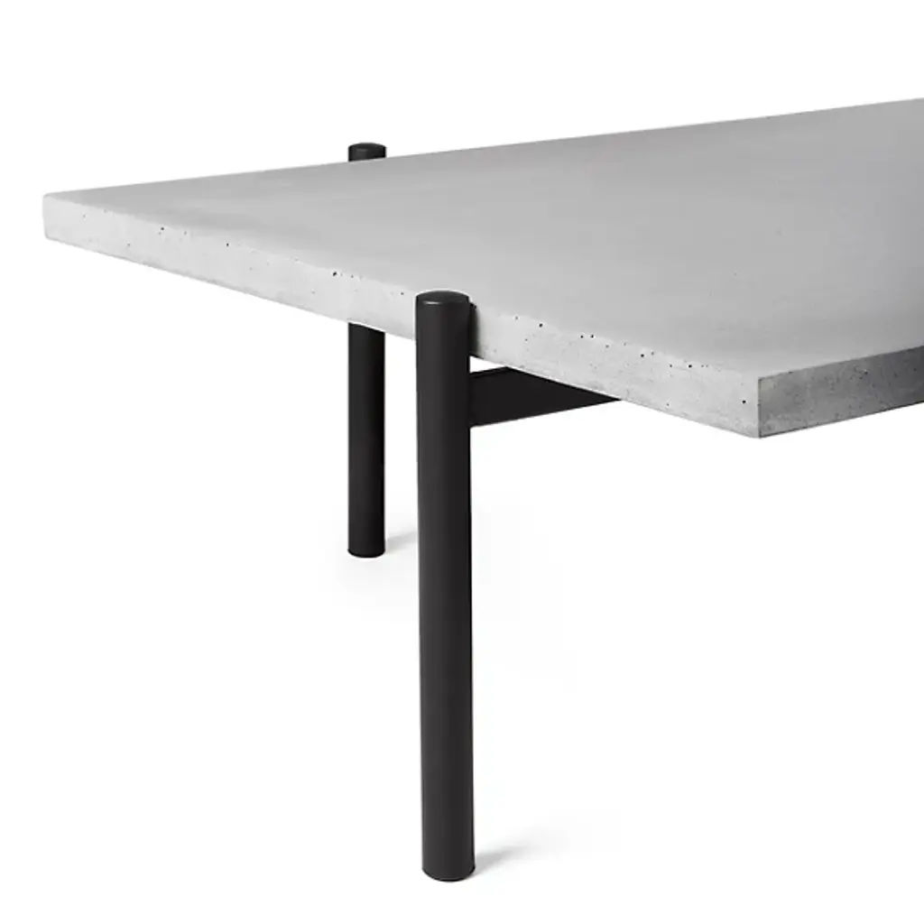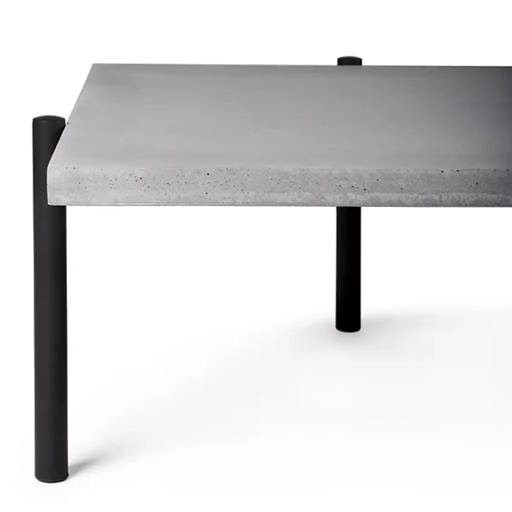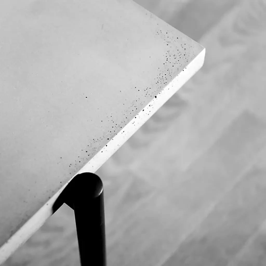 Unconventional and contemporary. The Twist Coffee Table is an innovative design from Alexandre Dubreuil for the French luxury brand Lyon Beton. Composed of a high-performance concrete platform and a satin powder-coated steel frame with a black lacquered metal base. The perforated metal plate has a 360-degree rotation capability, and the concrete top has been finished in a colorless, water and oil-repellant varnish. Excellent for entertaining spaces. Place tapas on the rotating plate and other décor to elevate a space with enlightened design.