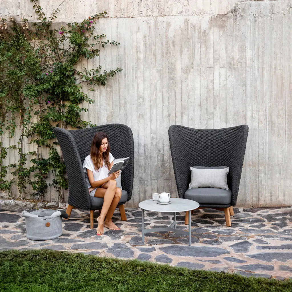 Twist is an elegant, decorative and practical side table for the outdoor environment. The duo behind the design is byKATO. The Twist table is the perfect addition to the outdoor lounge environment, or as a small sidetable to accompany your favorite seat in the garden. Twist is made of a lightweight frame in white powdercoated aluminum, and a tabletop in the durable material solid surface. The frame of the table is simple with a twist, to add an extra dimension to an otherwise simple coffee table. When fall comes, the Twist table can easily be moved indoors to match the interior in the home.