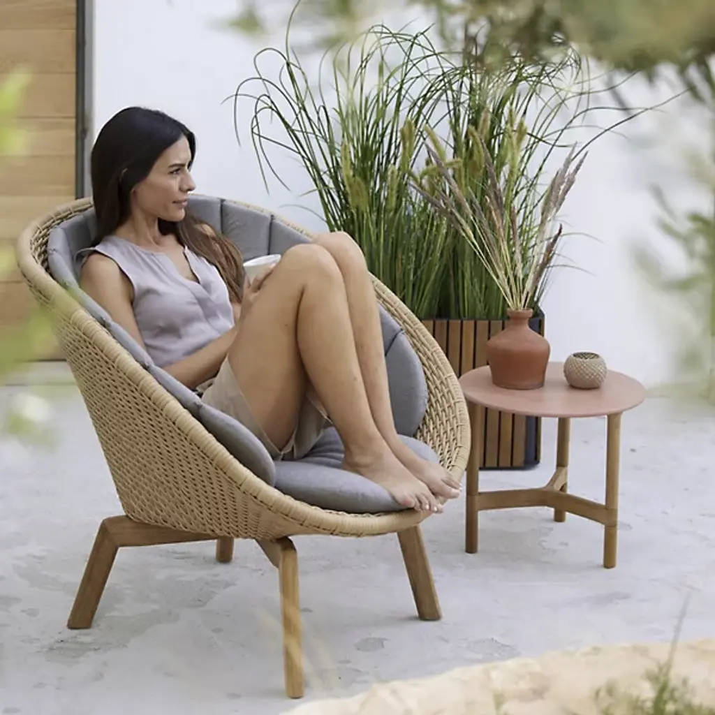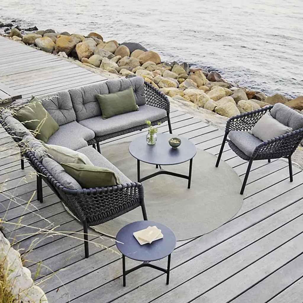 A design from byKato, the Twist Outdooor Coffee Table is presented by Cane-line. The frame is made of a lightweight powder-coated aluminum for ease of mobility, while the trio of legs provides an extra level of visual interest. This is a classic coffee table styling with a “twist,” suitable for indoor settings like the entertaining area or outdoors in the garden next to your favorite Adirondacks. Regardless of where you place the Twist, it will serve the moment in style.