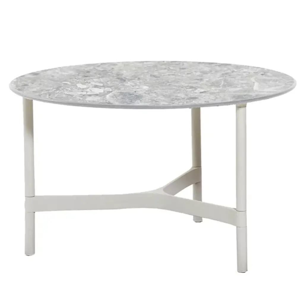 The Twist Outdoor Medium Coffee Table from Cane-line is composed of refined aluminum and exquisite ceramics. Its sturdy framework has a Y shape that keeps its legs balanced as it foundationally supports the spacious circular tabletop. With room for mugs, trays, and more, Twist becomes a gathering place for your family. Enjoy morning cups of coffee while delighting in Twist’s fine craftsmanship. This versatile piece is built for the outdoors, withstanding the elements easily.