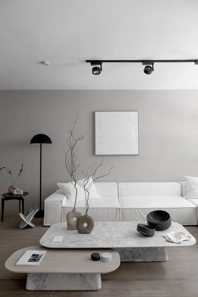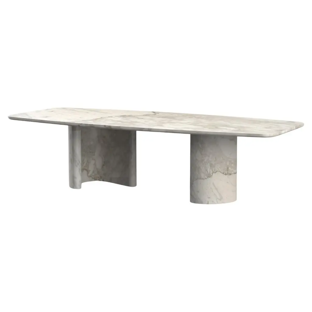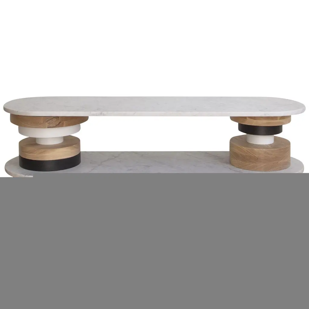 Two Pedestal Coffee Tables In White Marble And White Oak Veneer