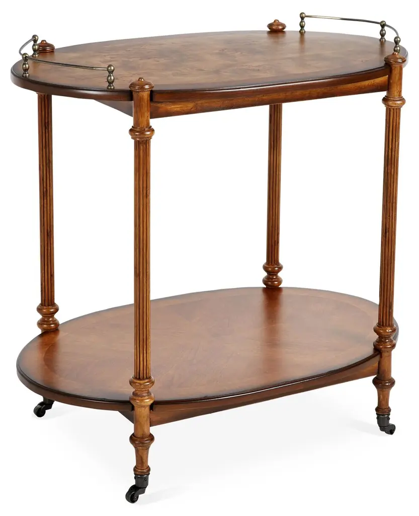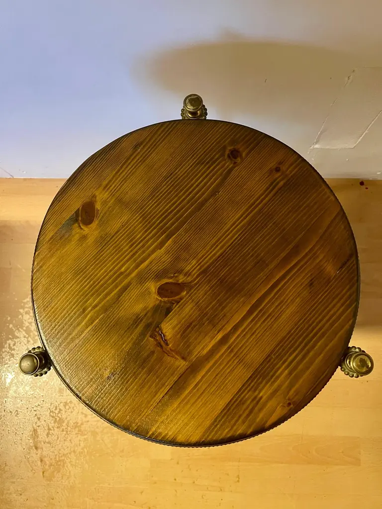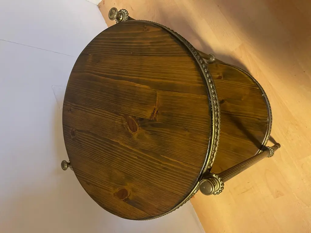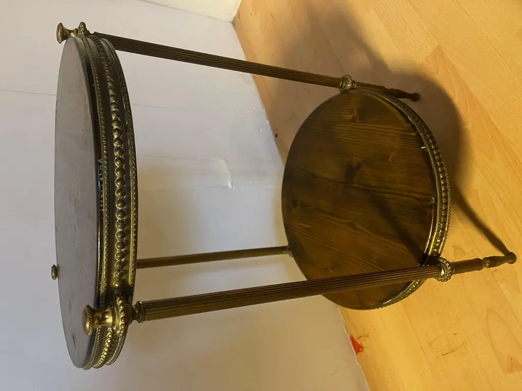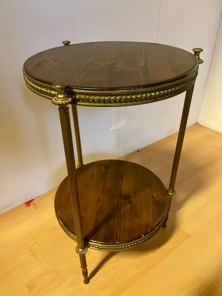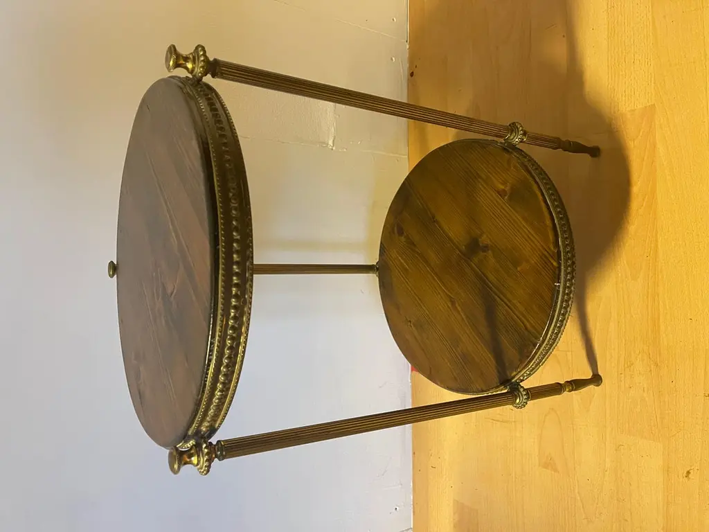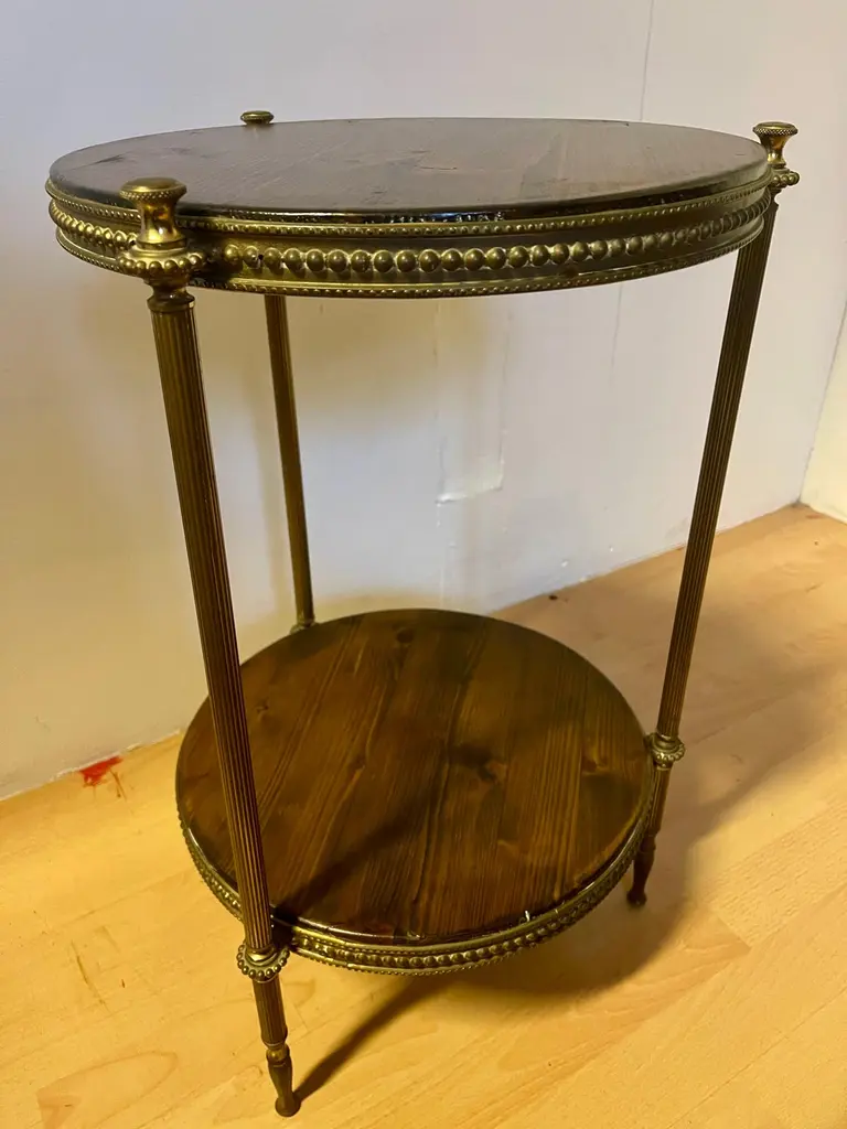 Two-Shelf Round Brass And Wood Vintage Italian Style Coffee Table
