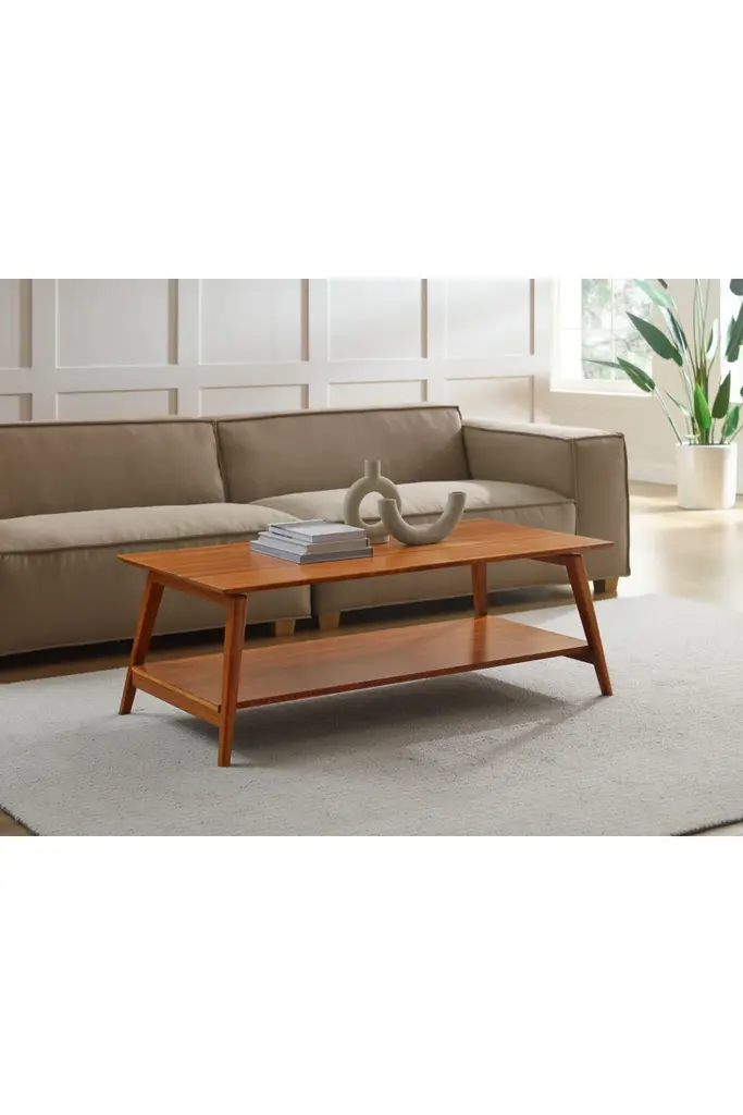 Introduce a touch of elegance to your home with the Greenington Antares Two-Tiered Coffee Table. Handcrafted from environmentally-friendly Amber bamboo, this Mid-Century inspired piece is both stylish and sustainable. Its two-tiered design offers ample surface space and a functional lower shelf for your daily essentials. Each table is uniquely beautiful, showcasing natural variations in grain and color. Elevate your living space with the luxurious charm of the Antares coffee table.