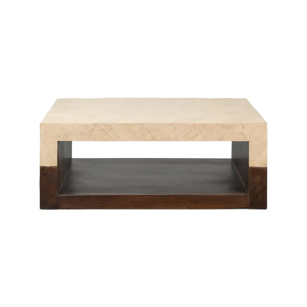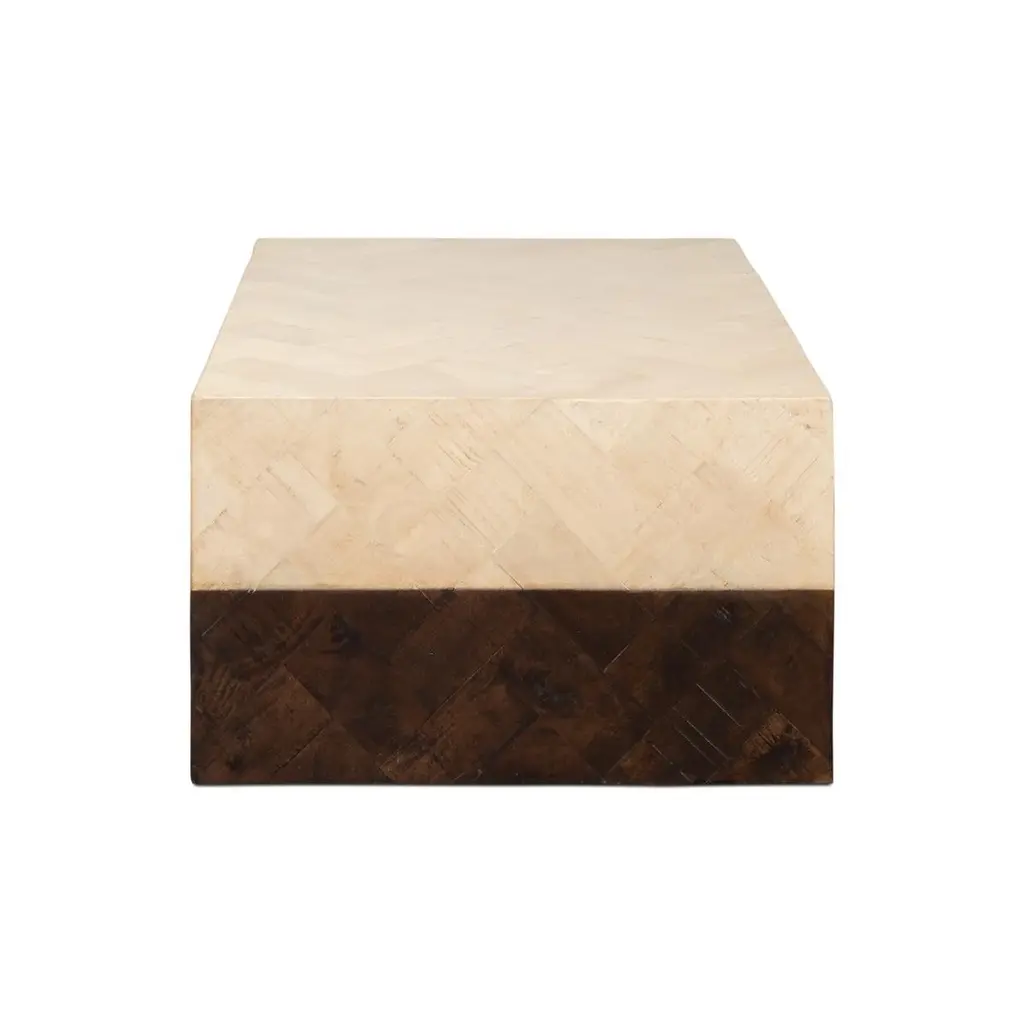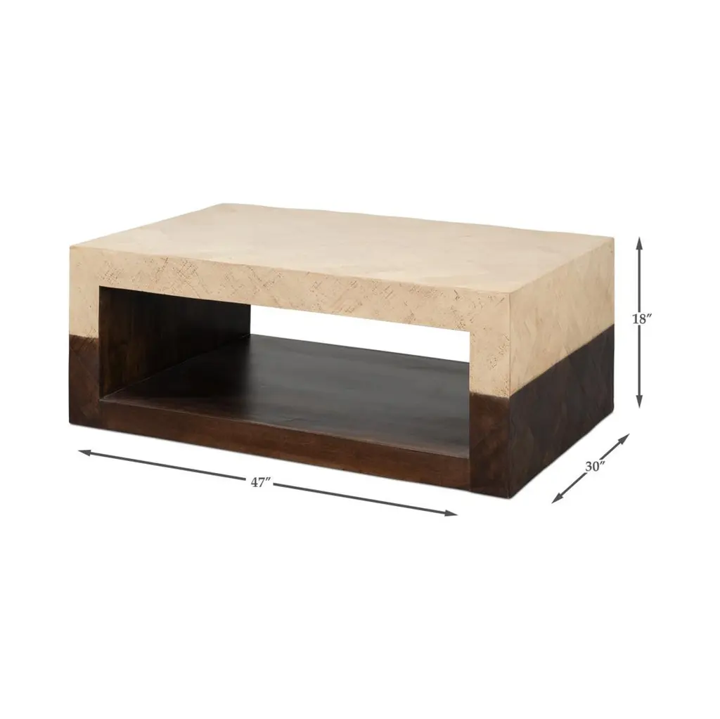 The coffee table emerges as a centerpiece that masterfully unites contrasting shades and intriguing forms. It embodies the essence of contemporary design, injecting a revitalizing slant on modern aesthetics. The distinctive geometric interplay functions as more than a practical item—it's also a piece of art poised to elevate any room's ambience.This coffee table spans a generous 47 inches in width, 30 inches in depth, and stands 18 inches tall, making it a perfect match for a variety of living room configurations. The dimensions are thoughtfully considered to ensure a comfortable fit within your space, all while offering ample surface area for everyday coffee table necessities.Dimensions: 47" W x 30" D x 18" H