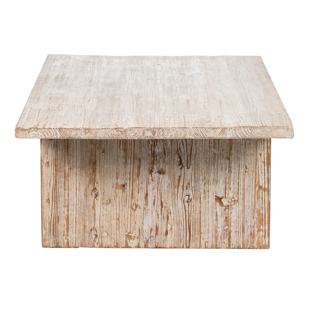 Made of solid pine wood with an aged white finish, the Tyne coffee table makes a simple, sophisticated statement. This substantial table features a rectangular surface set atop two wide, angled legs to minimize visual clutter while matching traditional, modern and rustic homes alike. A one-of-a-kind work of natural art with unique variations in color and grain pattern, its reclaimed-wood construction guarantees that no two pieces are alike.