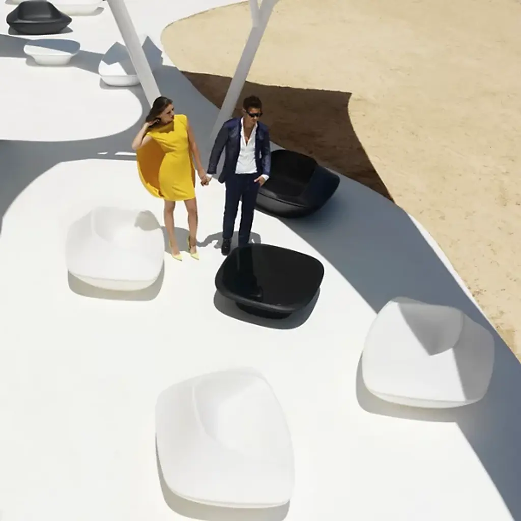 Elegant and out of this world. Blend the sleek silhouette of a UFO with that of a tiered pagoda building and you get the Ufo Outdoor Coffee Table from Vondom. Spark up some thoughtful conversation around this piece, whether you're inside or outside. Sporting weather-resistant properties, the use of polyethylene resin makes the piece a true mainstay in your home. As you rest your refreshing beverages on the tabletop, you're treated to a sleek oval shape, one reminiscent of a UFO's zipping silhouette. Like a level from a pagoda, the tapered base draws the eye while making giving your living area a more spacious feel.