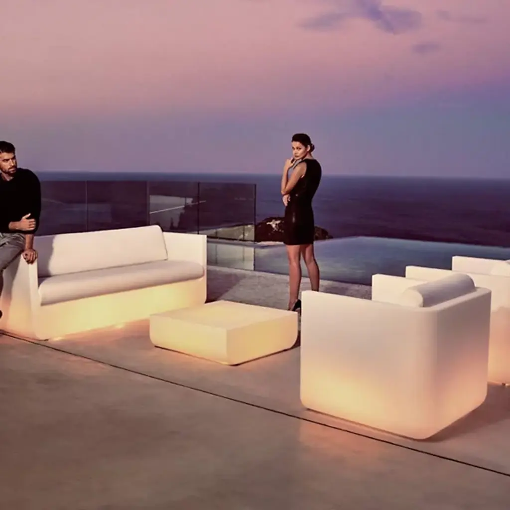 The Ulm Outdoor Coffee Table by Vondom embraces the formal approach of the Ulm School and was designed by Ramon Esteve. Aiming to strike the perfect balance between design, technology, and ergonomics while drawing on the basic cube, prism, and spherical shapes, this piece has a simple silhouette. Made using a rotational molding process and polyethylene resin, this coffee table is able to complement spaces both indoors and out with its soft form and functional nature.