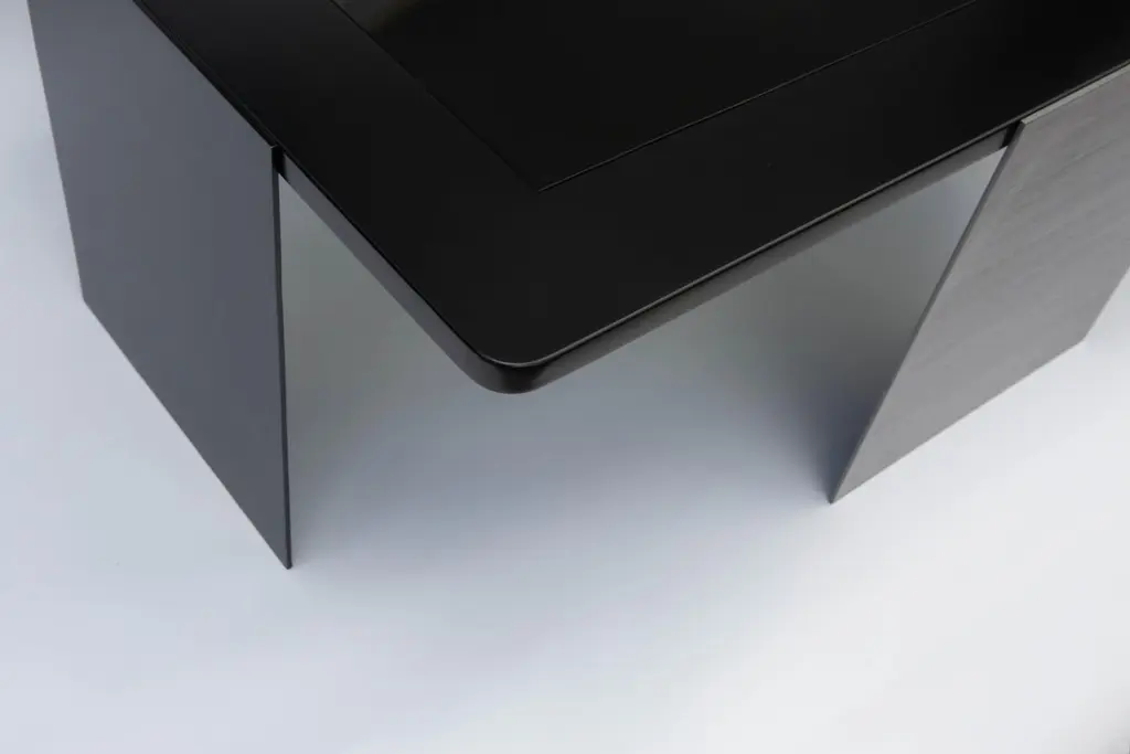 Ultimo Coffee Table In Black Metal With Translucent Black Glass By Soraya Osorio