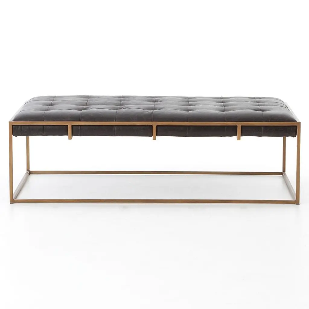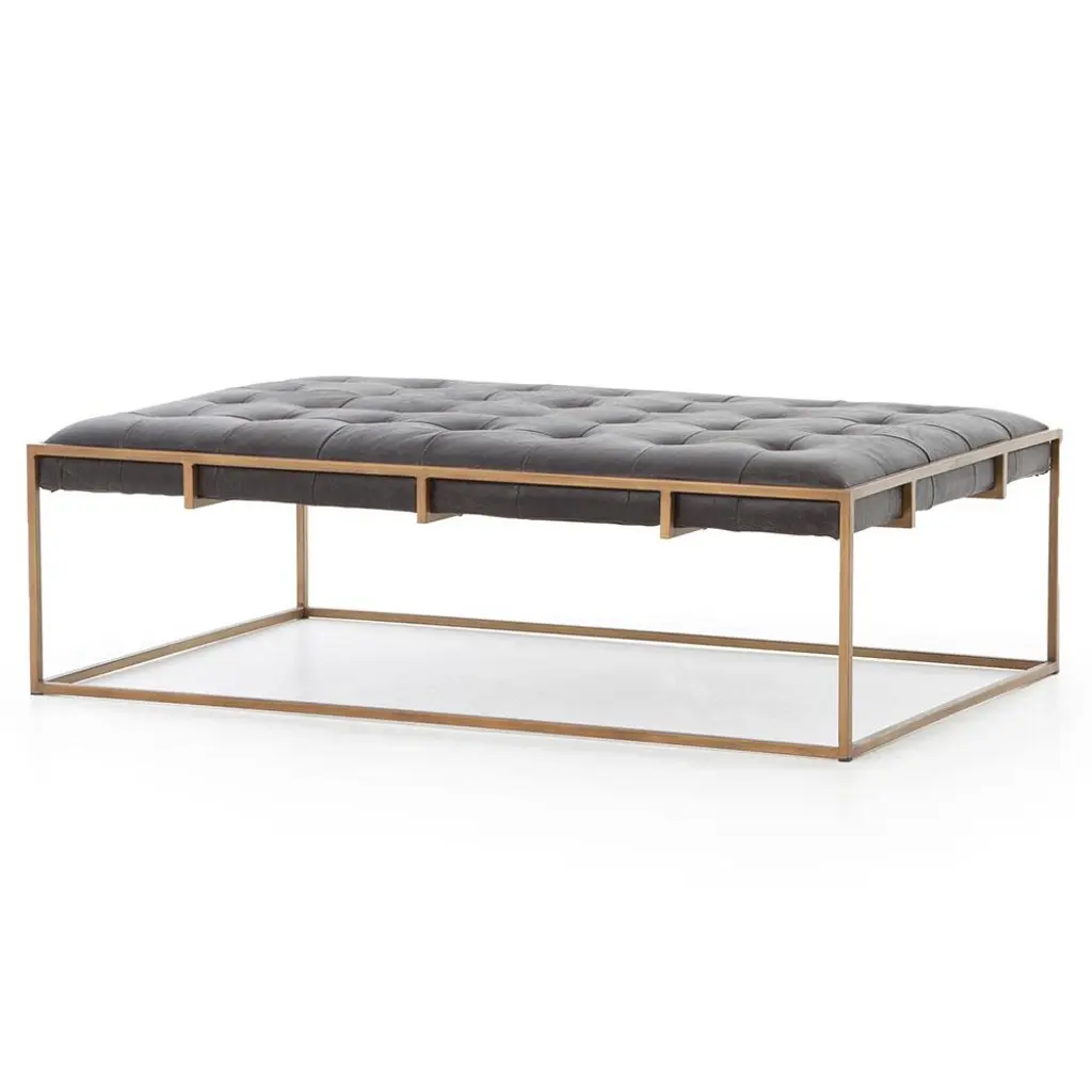 Ulysses Black Upholstered Leather Brass Iron Tufted Rectangular Coffee Table - Small