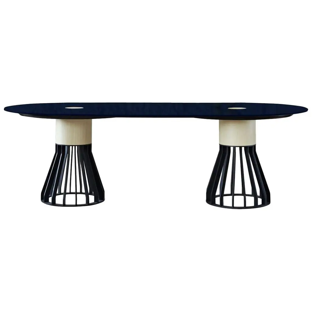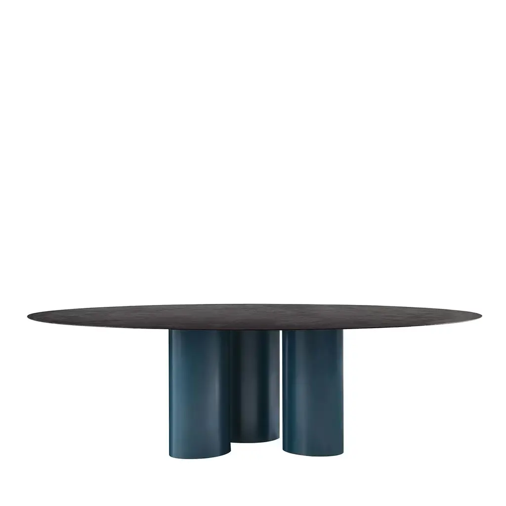 This table is part of the UMA Collection designed by Ludovica and Roberto Palomba. Featuring a rectangular resin top, UMA Round 90 puts the design accent on the table’s conical pedestal legs upholstered in soft Dedar fabric, available for indoor or also outdoor use. The textile selection made by the designers is not limited to covering the legs of the tables but becomes both structure and decoration at the same time. Please, contact the Concierge for further information and options.