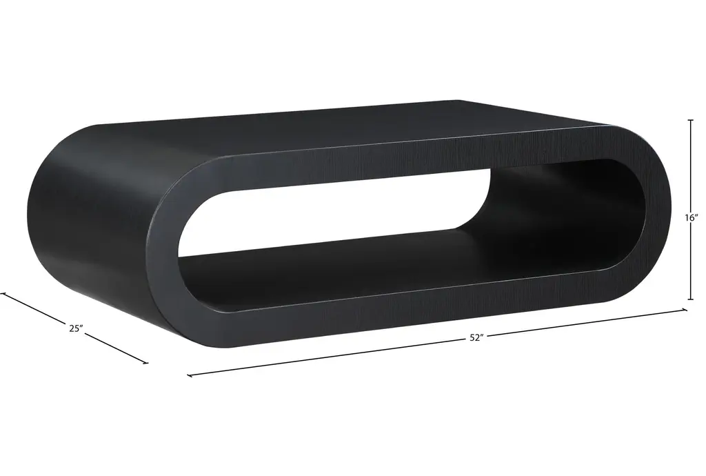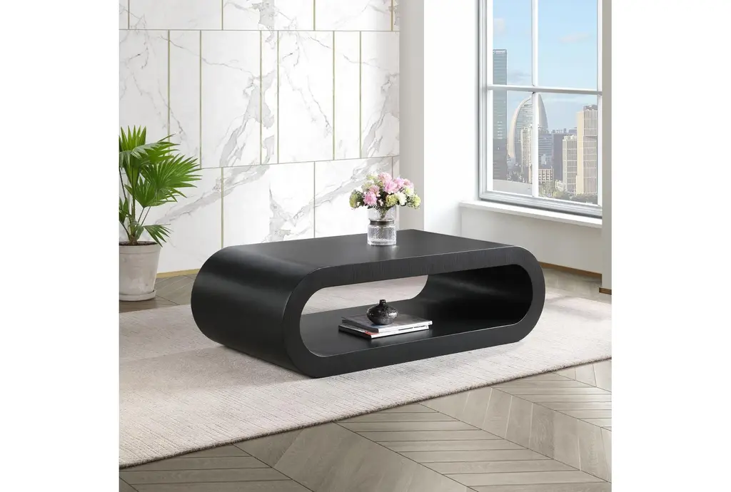 Unique Modern Curve Black 52" Oglong Oval Coffee Table | Shelves | Rectangle | Storage