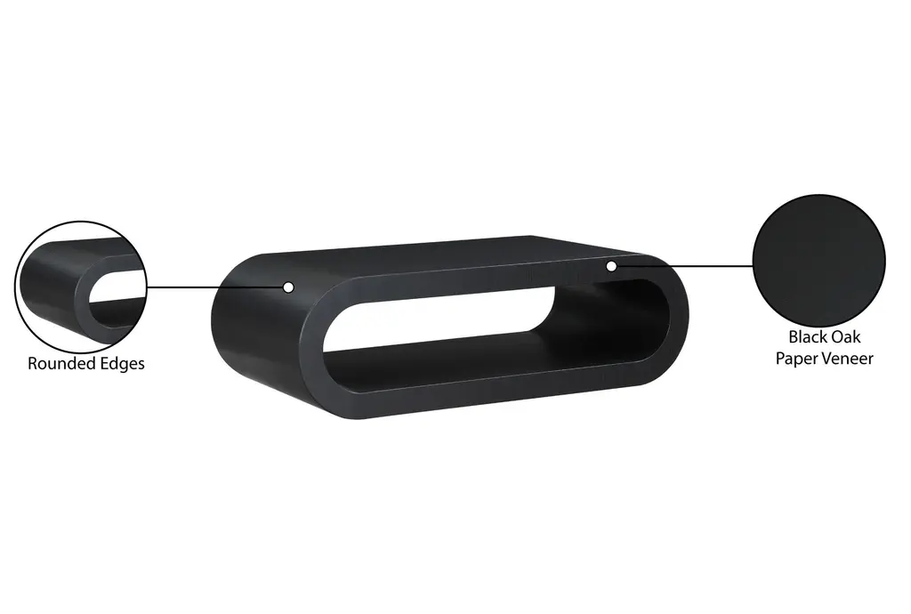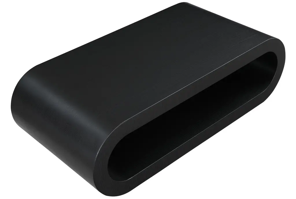 The Unique Modern Curve Black 52" Oglong Oval Coffee Table is a stunning addition to any contemporary living space. Its sleek black veneer finish and rounded edges create a sophisticated and stylish look. Crafted from polyresin, paper veneer, and engineered wood, this coffee table is both durable and elegant.