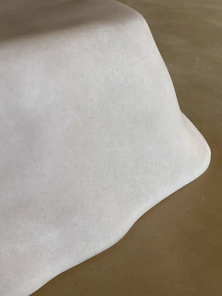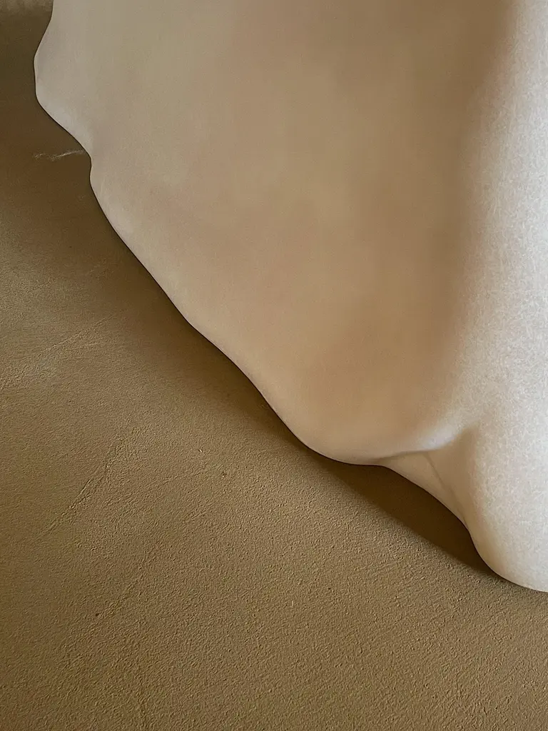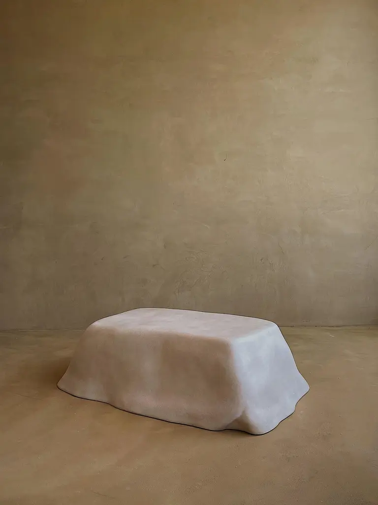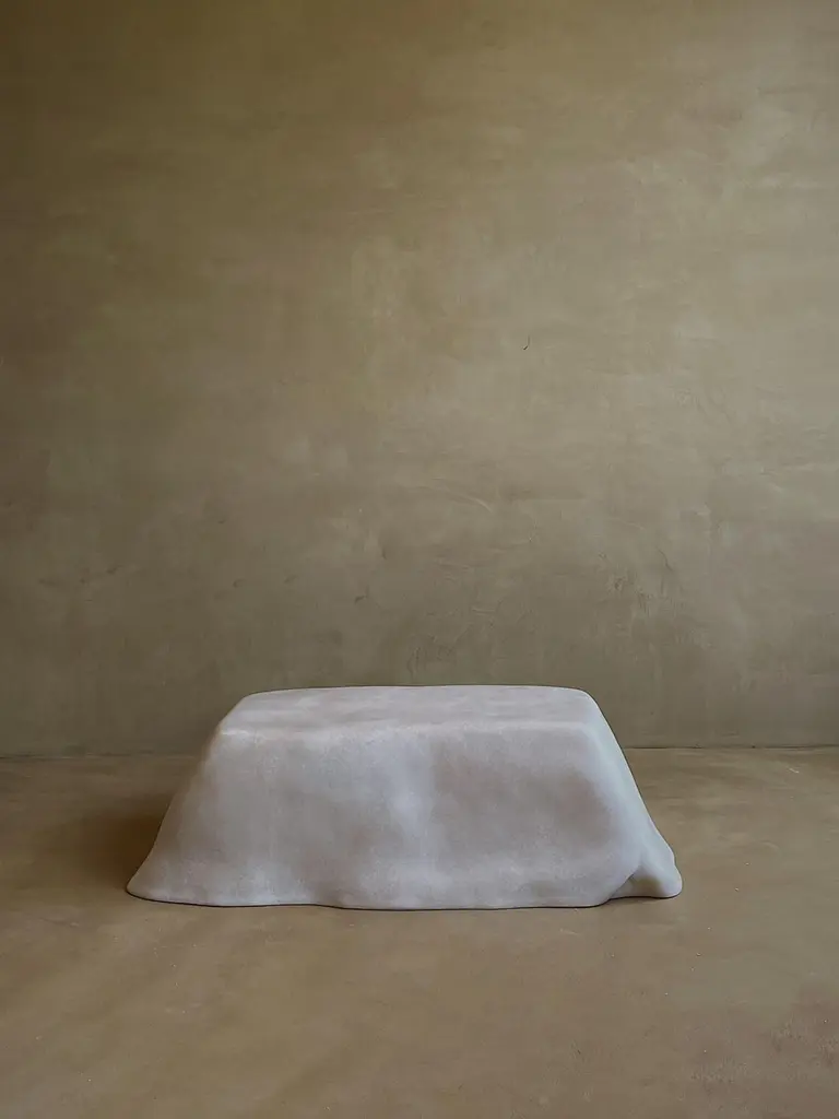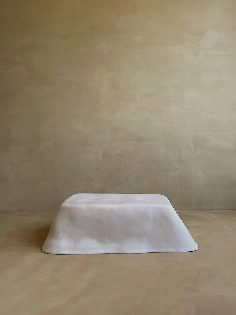 Pudding coffee table by karDimensions: W 120 x D 75 x H 34 cmMaterials: FRPKar, is the root of Sanskrit Karma, meaning karmic repetition. We seek the cause and effect in aesthetics, inspired from the past, the present, and the future, and we create.The creation journey base on sensibility, we aim to convey emotion through the creation. From the very first kneading, the designer's current emotion, either joy or sorrow, affects the strength and trace on the clay. The overall edges and the lines are inornate and plainness, representing a true emotion, "not by intention".Due to the use of this organic material, the finish will have irregularities, those are not imperfections but part of the visual will of the designers and makers.
