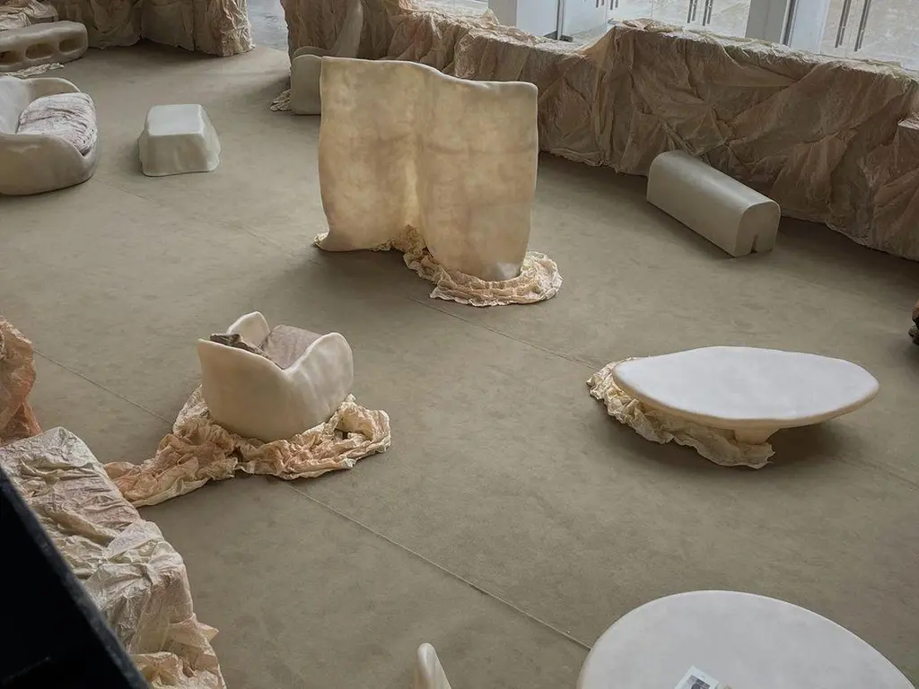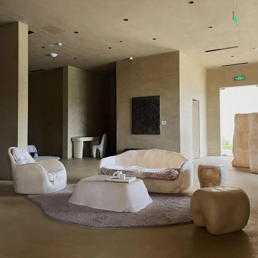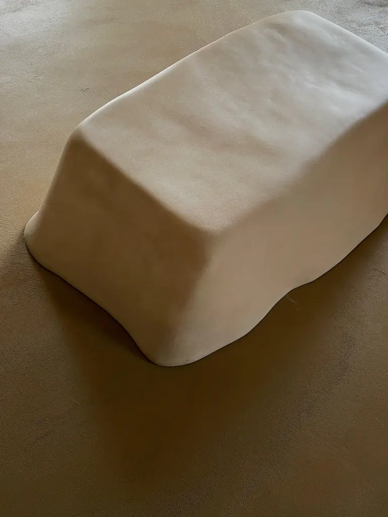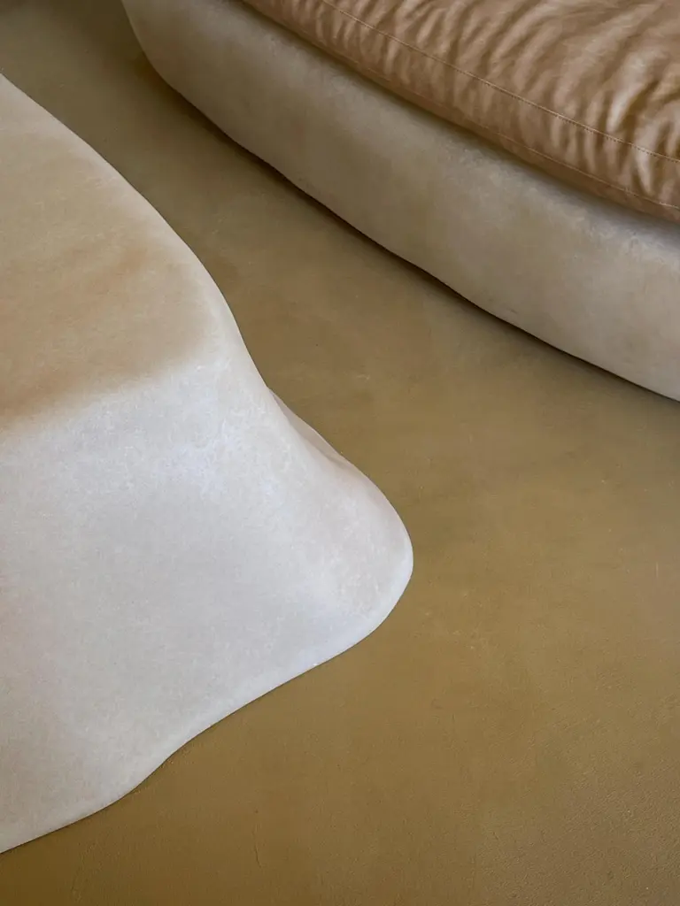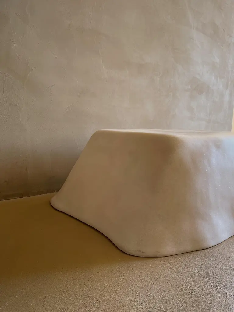 Pudding coffee table by karDimensions: W 120 x D 75 x H 34 cmMaterials: FRPKar, is the root of Sanskrit Karma, meaning karmic repetition. We seek the cause and effect in aesthetics, inspired from the past, the present, and the future, and we create.The creation journey base on sensibility, we aim to convey emotion through the creation. From the very first kneading, the designer's current emotion, either joy or sorrow, affects the strength and trace on the clay. The overall edges and the lines are inornate and plainness, representing a true emotion, "not by intention".Due to the use of this organic material, the finish will have irregularities, those are not imperfections but part of the visual will of the designers and makers.