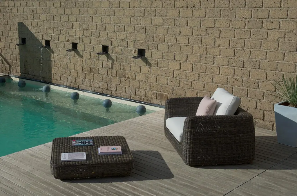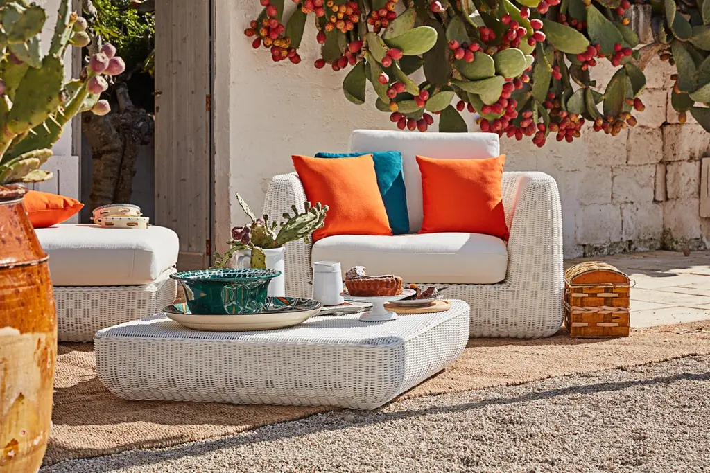 Agorà stands out due to its soft, organic forms. The rounded, enveloping character found in each product in the collection expresses a sense of comfort.The aluminium frame is as light as it is sturdy and its combination with the fibre, which is resistant to any atmospheric agent, gives it a sense of timelessness.Available in white, tropical brownCushion not included