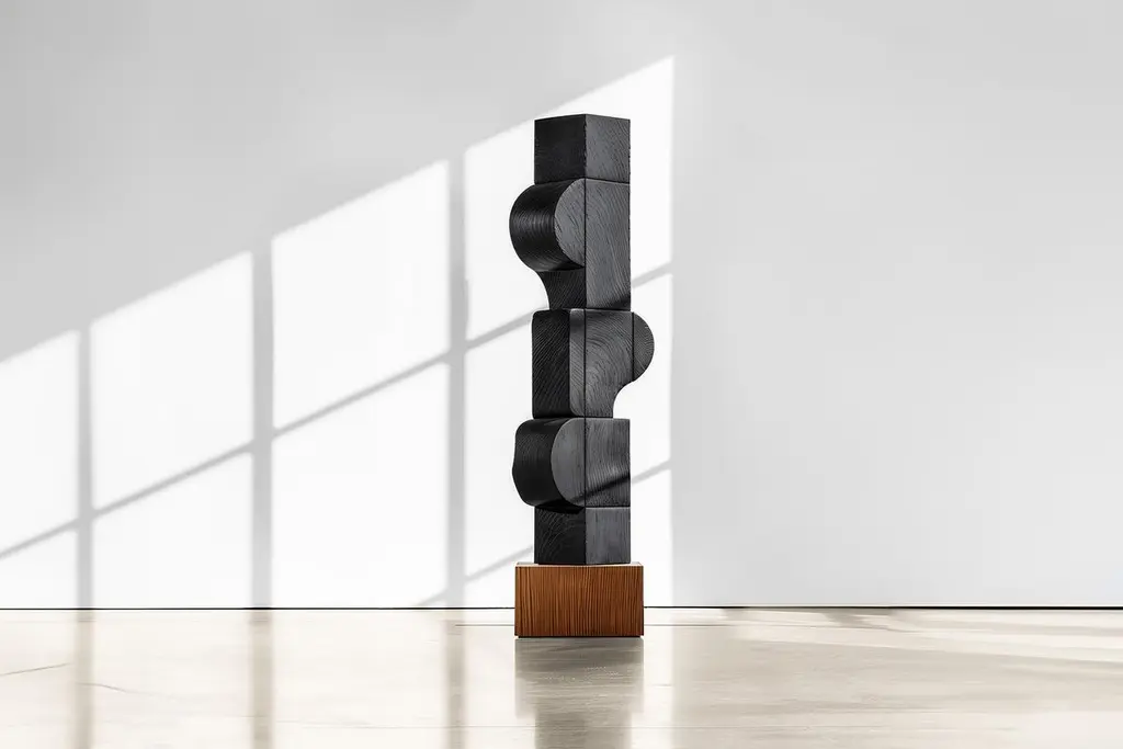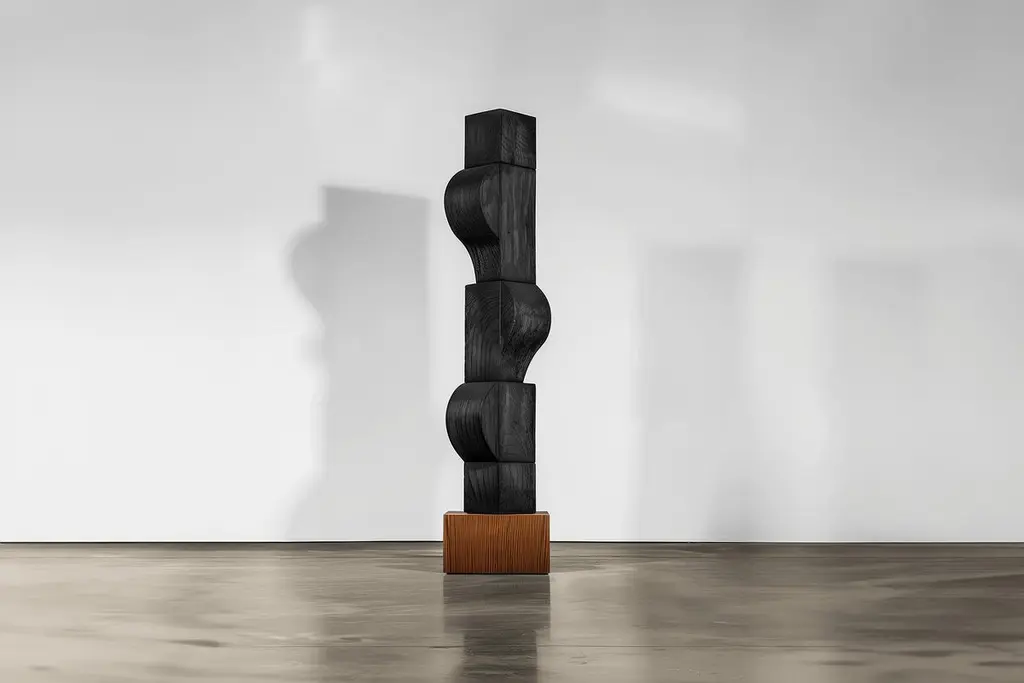 Unseen Force #50: Oak Coffee Table by Joel Escalona, Art-Decor Fusion———This monolithic sculpture, designed by the talented Artist Joel Escalona, is a towering example of beauty in craftsmanship. Hand and digital machine made; the standing sculpture stands tall as a monument to the skill of the artist. The wood carved sculpture is a biomorphic pillar with an intriguing, wonderfully undulating surface, crafted with precision and care to create a wonderful patina.Inspired by masters of abstract carving like Constantin Brancusi, Isamu Noguchi and Jean Arp, this outstanding sculpture embodies the spirit of organic art. Each piece is made to order, specific for each client and takes around 3-4 months to complete. Although each sculpture is unique, they all maintain the same spirit, proportions, and dimensions that make them so exceptional.This sculpture, like a beautiful work of art, is prepared to be mounted on a plinth, which is included. The organic sculpture is a beautiful expression of art and nature, a testament to the wonder of the natural world and the power of human creativity. This hand-crafted wood sculpture is a true masterpiece and a magnificent addition to any collection.——NONO is a Mexican design brand with more than 10 years of experience dedicated to the production of interior furnishings, editions, and custom-made projects. At NONO, we create pieces of extraordinary beauty, accommodating the particular needs and tastes of each client with exclusive high-quality designs.————Some details to consider when placing an order with us:• Catalog images are digitally generated. Actual products may slightly vary in texture, grain, and final finish due to natural material differences. Despite these variations, our expertise ensures each piece maintains high quality and matches the intended design.• All of our products are made to order, and the lead time for standard products is estimated to be 9 to 12 weeks, plus shipping time. However, special pieces or sculptures may require a longer lead time.• We offer customization in dimensions and finish for all of our furniture pieces, which may result in additional charges.• We only facilitate freight services by a third party. The client is solely responsible for any associated import/export taxes, as well as any necessary customs paperwork.• We are not responsible for any damages that may occur during shipping or for any customs-related delays.