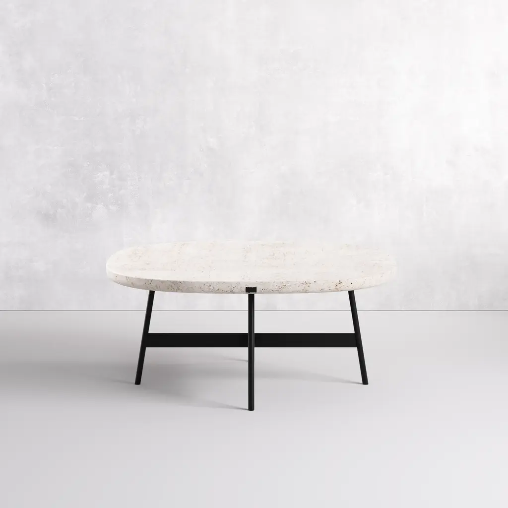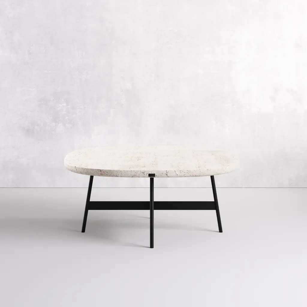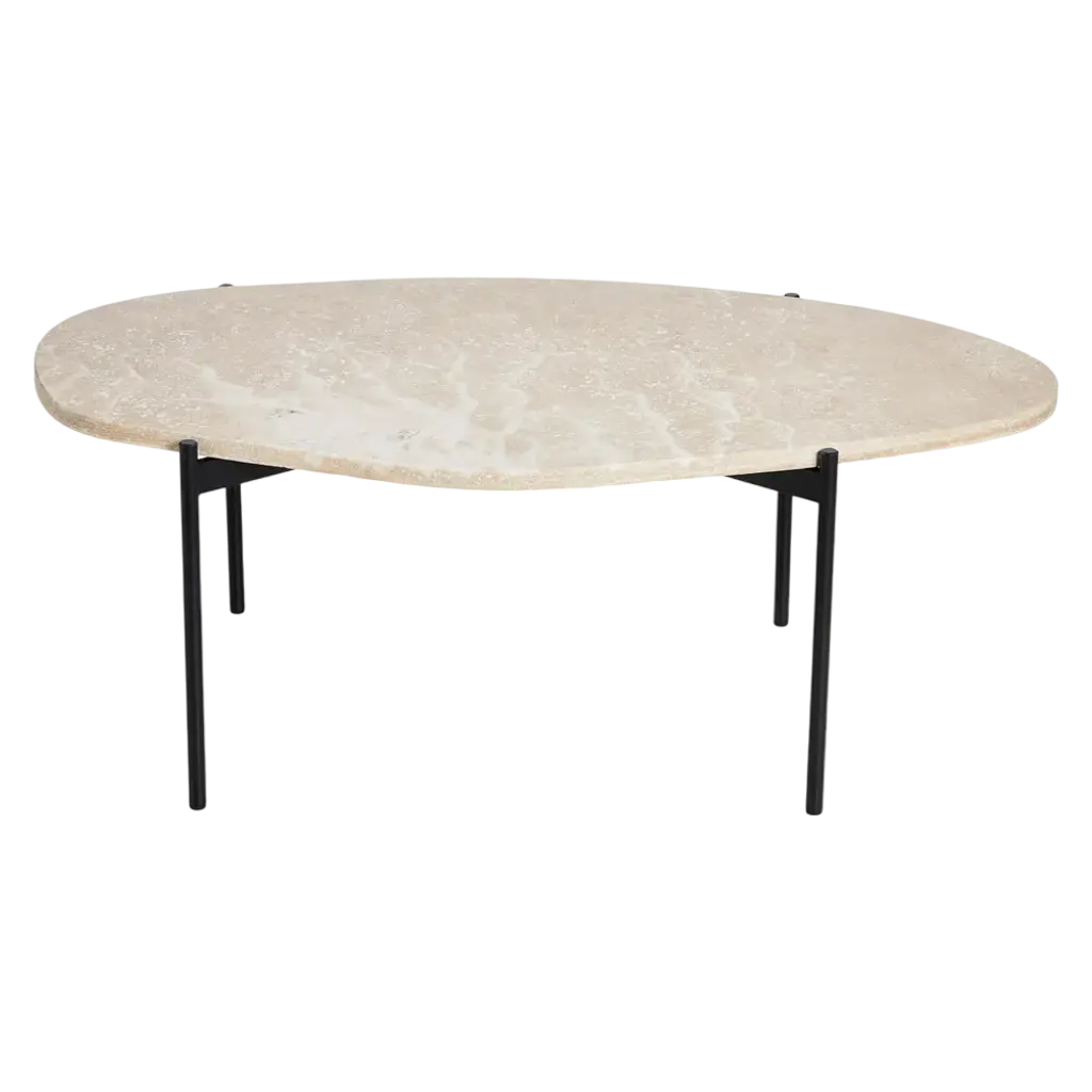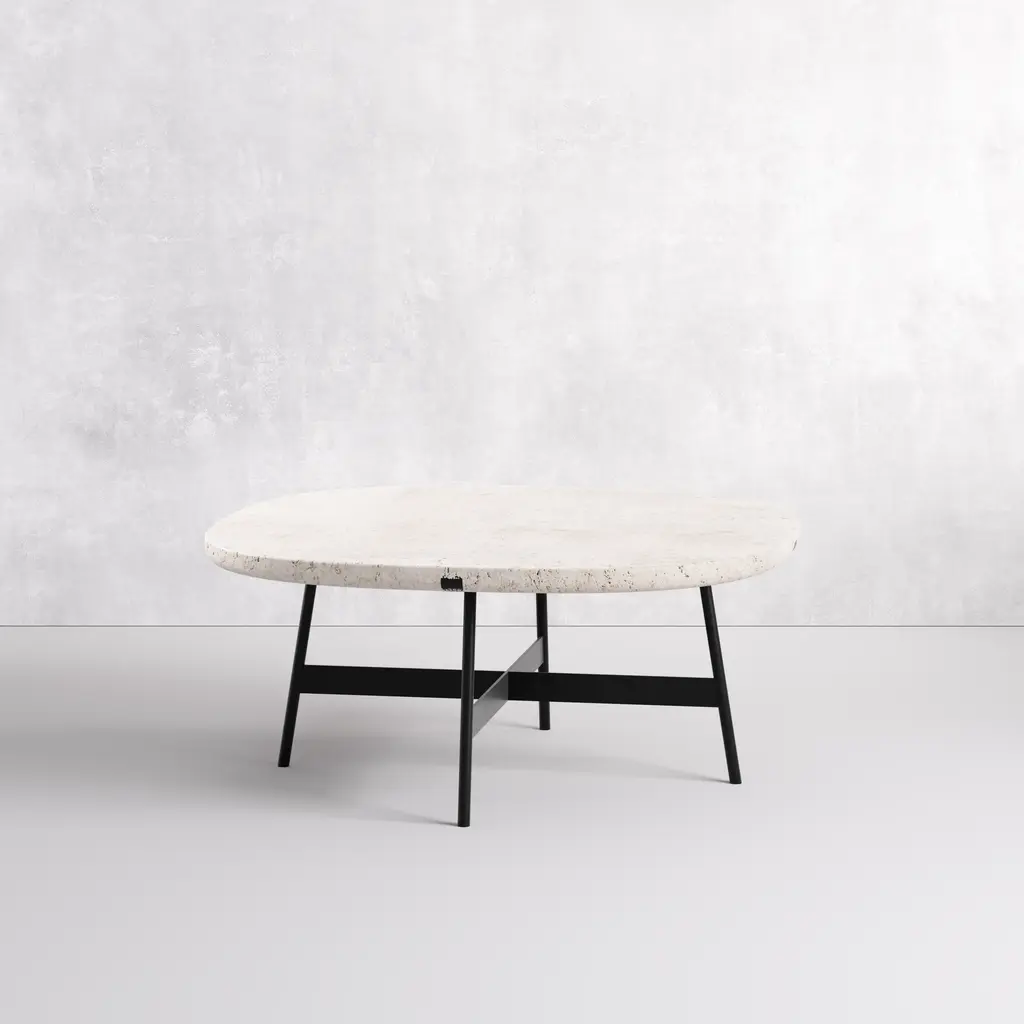 Strong, sharp, and sophisticated, our Utrecht coffee table makes a modern statement. The solid limestone top sits on a striking black iron base. The stone and metal combo is edgy yet still refined. This oval coffee table will instantly elevate your living room or formal entryway. Dimensions: 37.5W x 15.7H x 0D