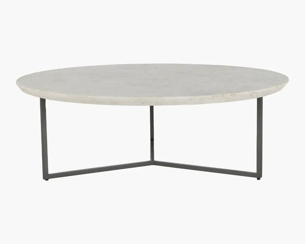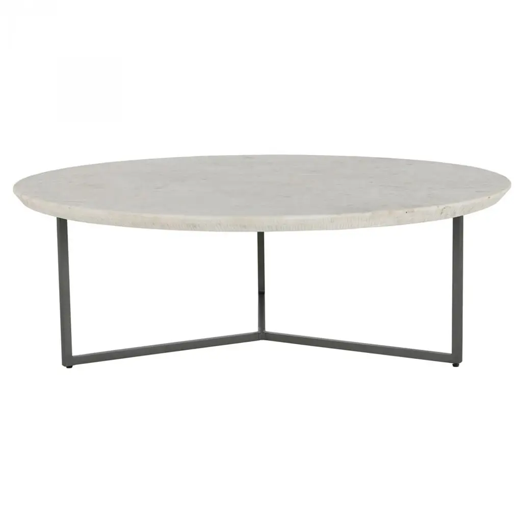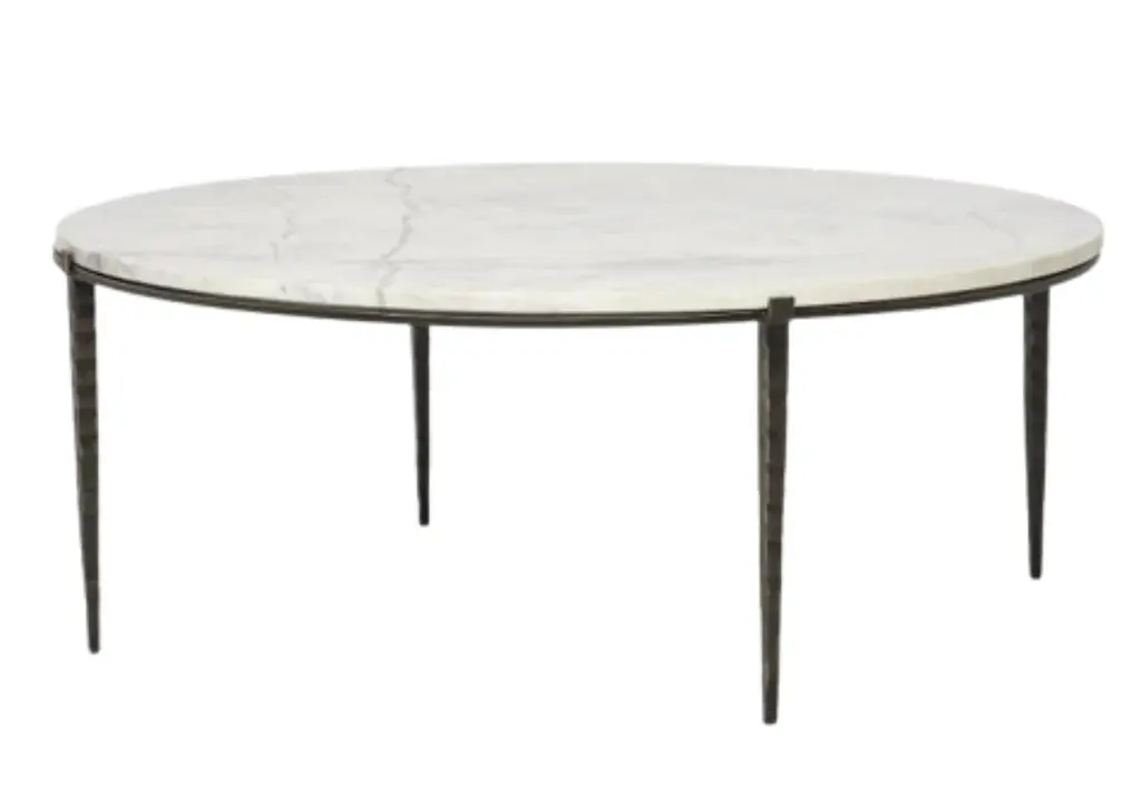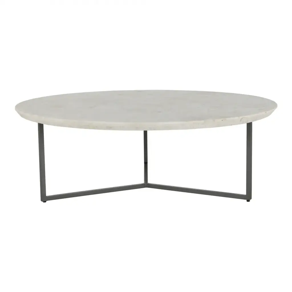 Strong, sharp, and sophisticated, our Utrecht coffee table makes a modern statement. The solid limestone top sits on a striking black iron base. The stone and metal combo is edgy yet still refined. This oval coffee table will instantly elevate your living room or formal entryway. Dimensions: 37.5W x 15.7H x 0D