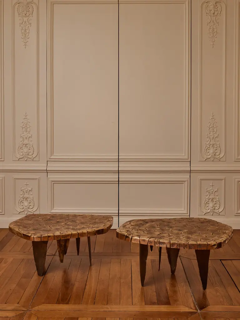 Pair of "UYUNI" coffee tables in sculpted and patinated bronze.Limited and signed piece by Erwan Boulloud.France, 2024.- 85 x 65 x H 35 cm- 85 x 56 x H 40 cm