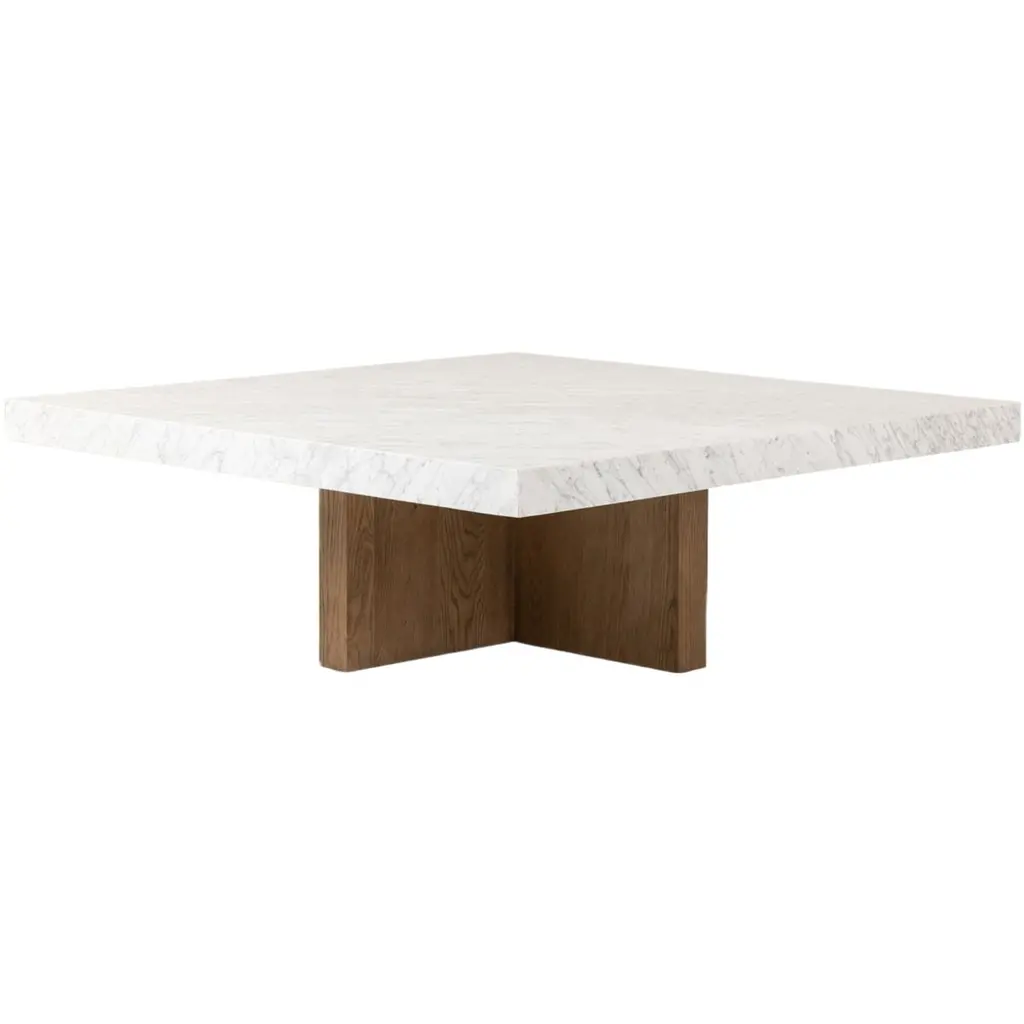 Structured lines and wide proportions come together in the Valentina Square Coffee Table, creating a stunning fusion of mixed materials. This coffee table combines the elegance of polished marble with the rich texture of smoked oak, offering a sophisticated centerpiece for any living space.