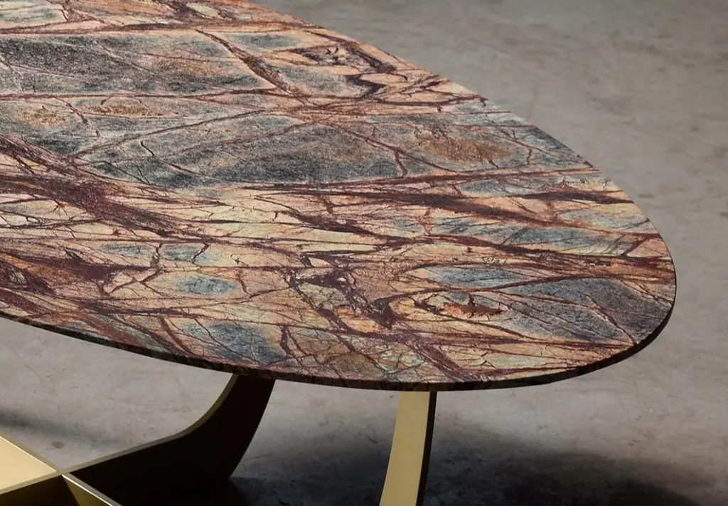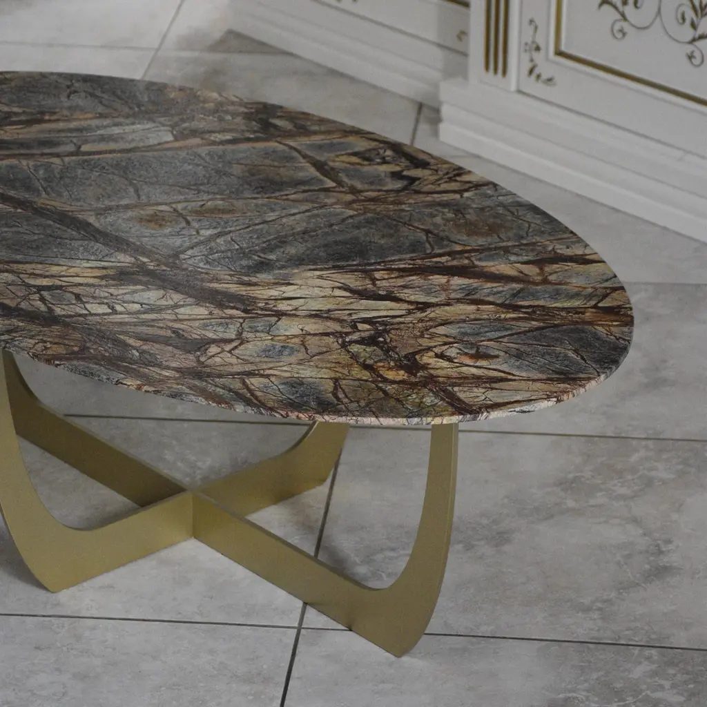 Valentine Brown Forest Marble Oval Coffee Table By Wm Metal Design