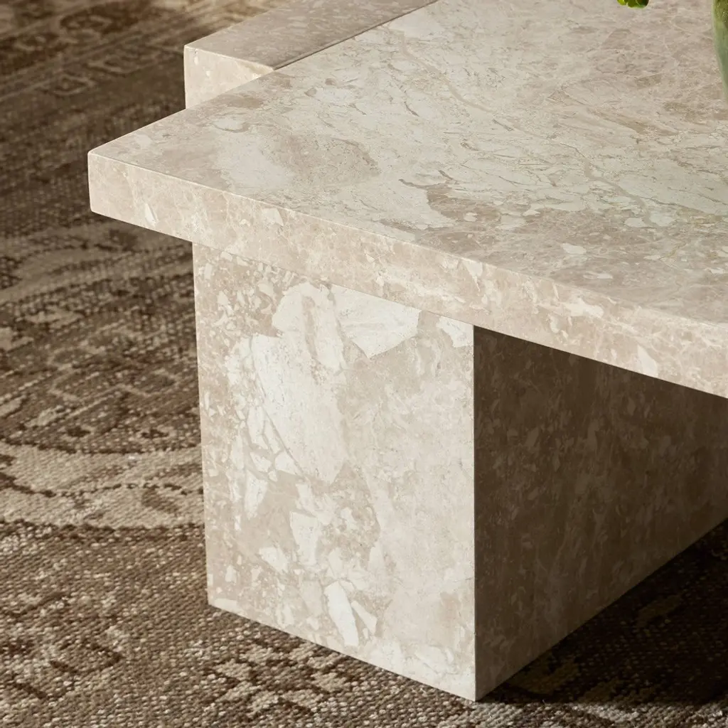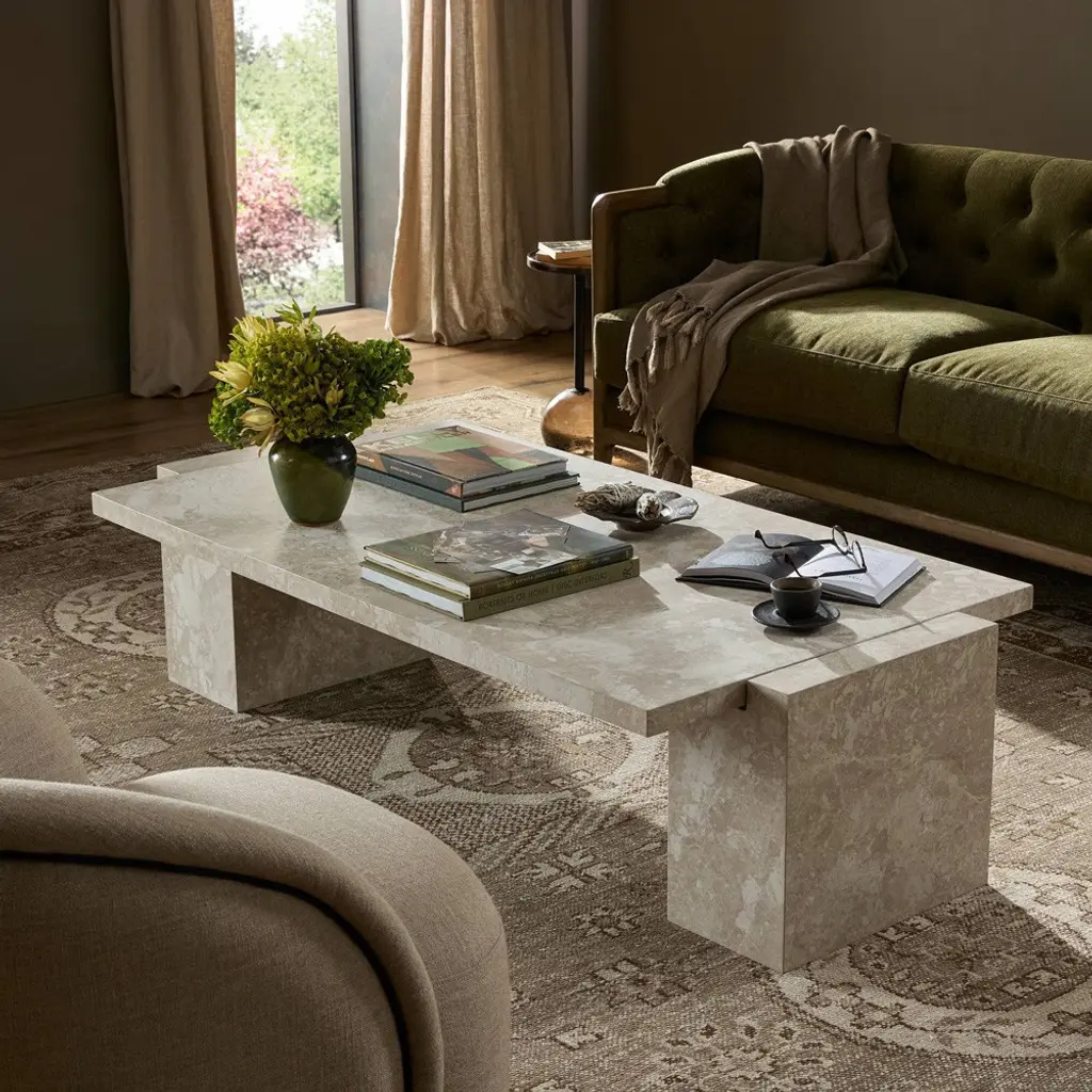 Valerie Modern Classic Beige Marble Rectangular Coffee Table
