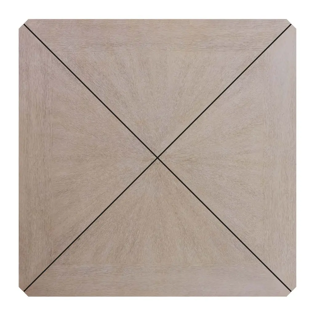 Our vancouver cocktail table is both graphic and elegant, existing harmoniously in traditional and contemporary environments alike. The piece is crafted in smoke oak veneer in a radial pattern, with angled, planer legs that follow the surface’s design. Antique brass iron inlays highlight the table’s strong geometry. Finish will vary.
