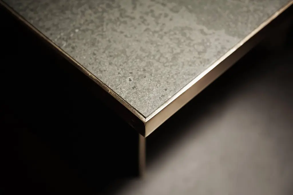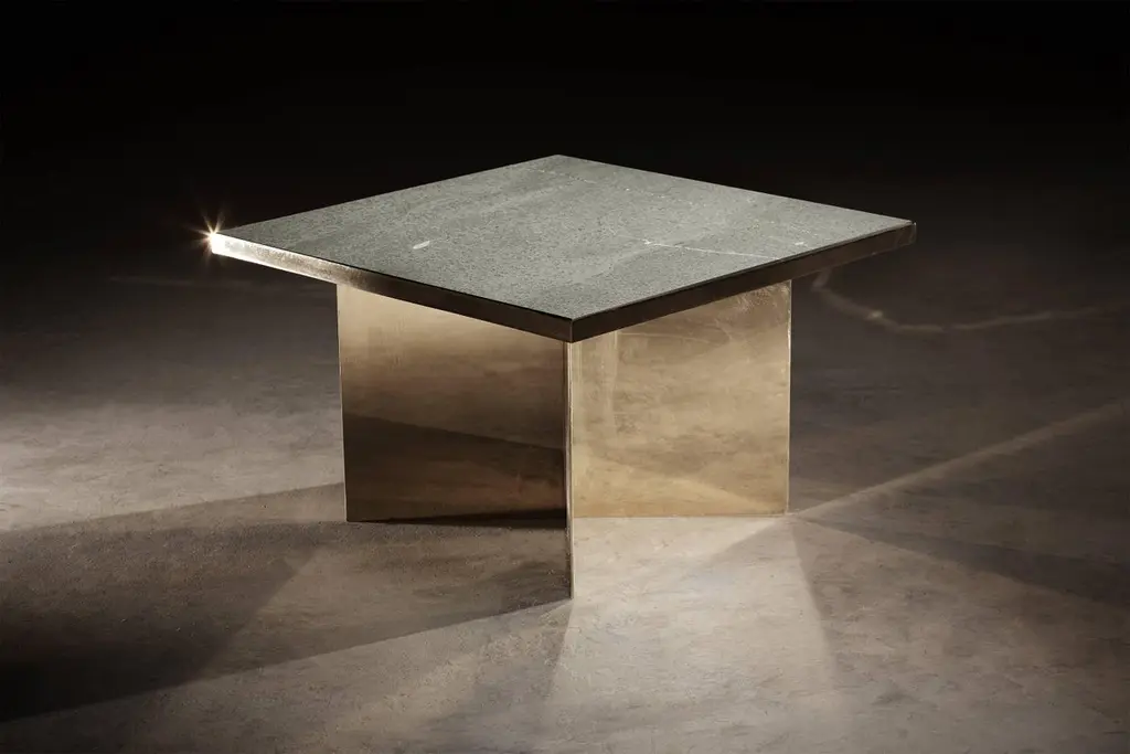 Verdi Coffee Table — Medium — Solid Brass Plate Base — Honed Cumbrian Slate Top